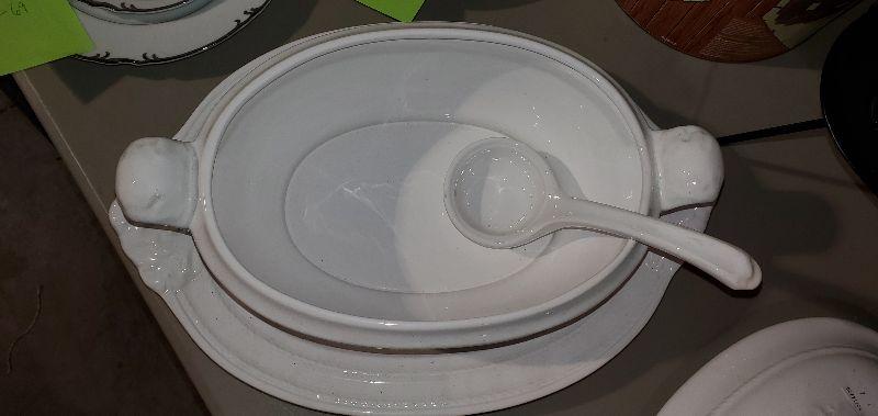Neuwirth Large Pottery Ceramic Serving Dish Platter Oval Covered Bowl with Serving Spoon Made in Portugal (item #73)