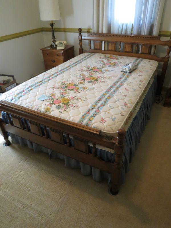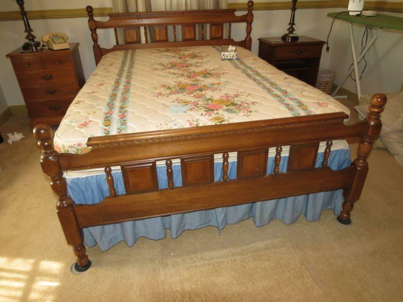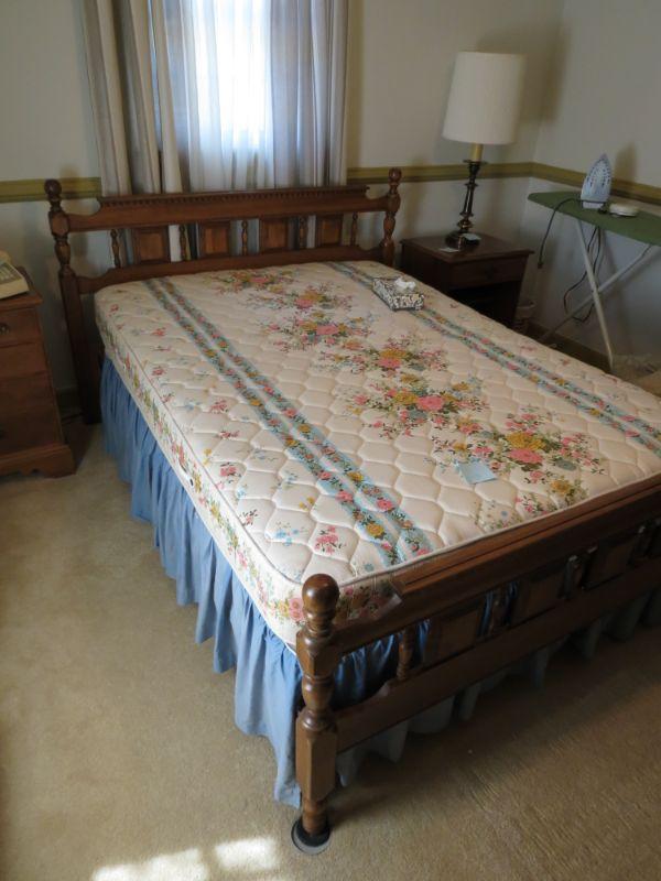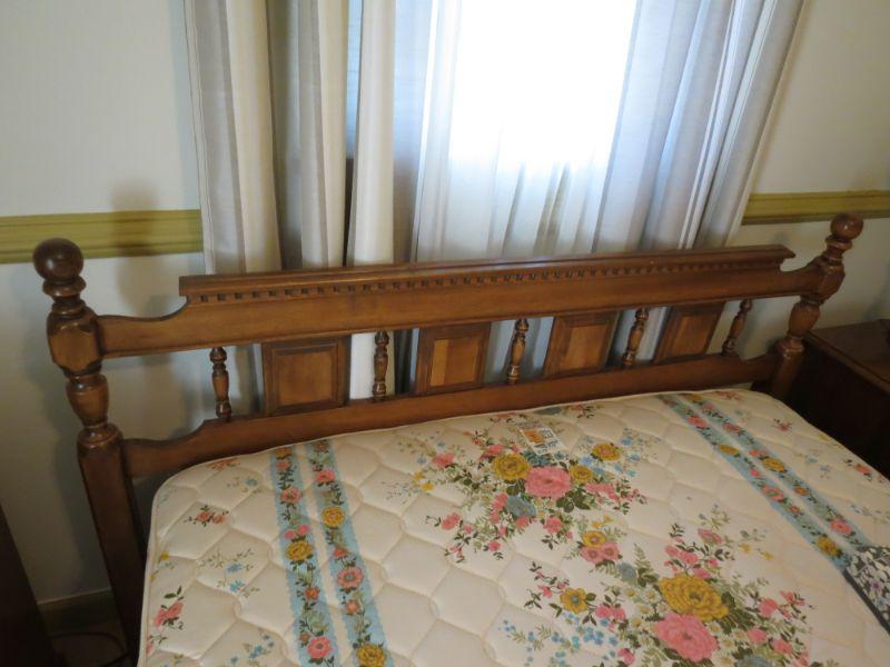 Vintage Maple Walnut Full Double Bed Headboard Footboard with Mattresses - Item # 73