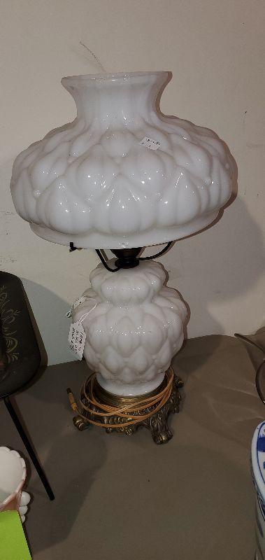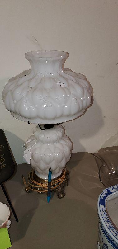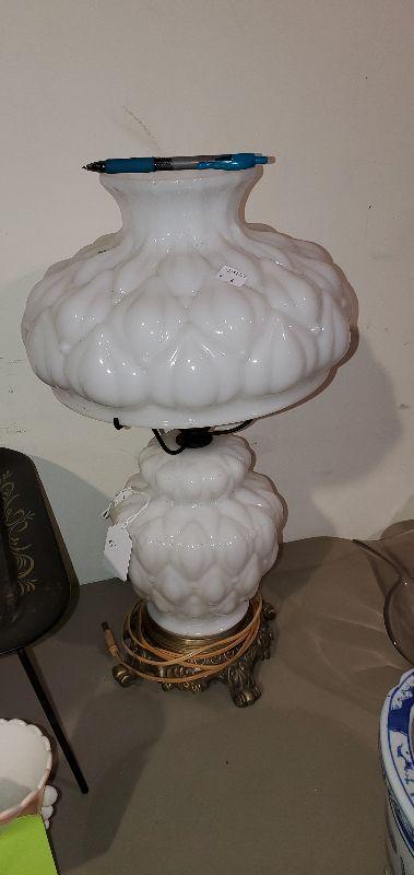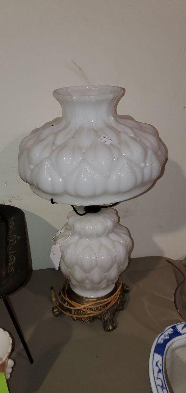 Vintage Tall Milk Glass Electric Lamp with Milk Glass Shade (item #77)
