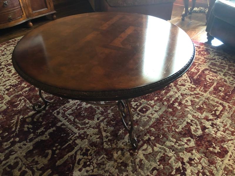 Large Round wood and iron coffee table