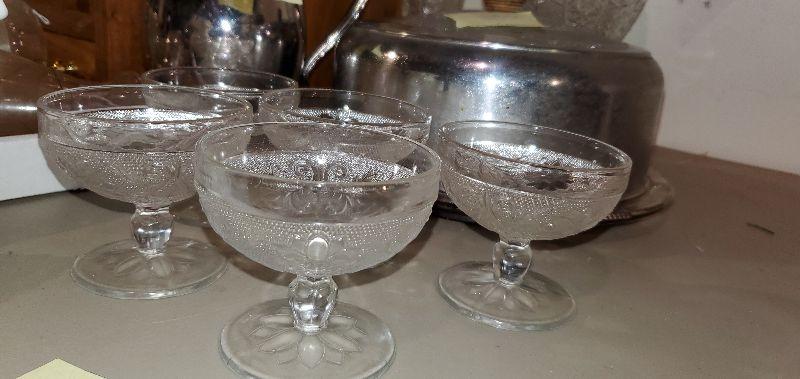 5 Vintage Depression Glass Clear Sherberts (item #96)