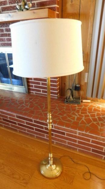 Item One of Two Brass 5 Socket Floor Lamp with Oval Shade 54"