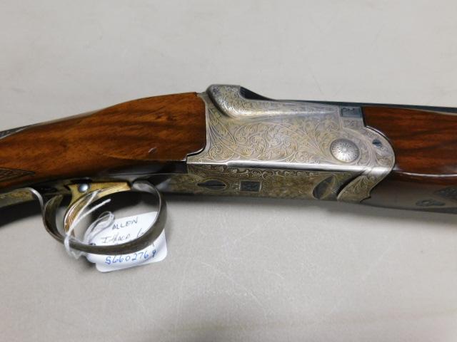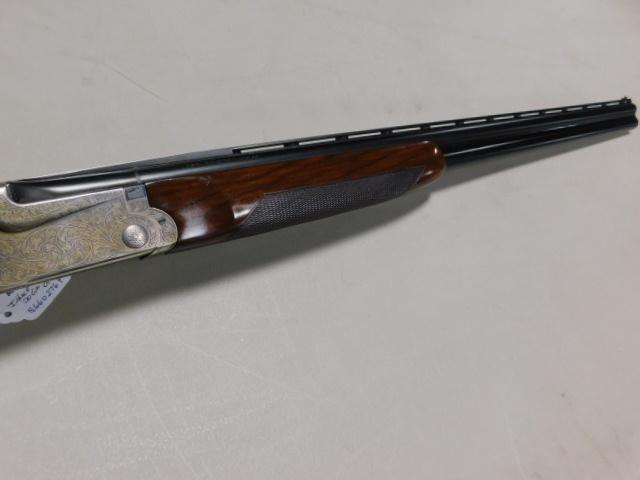 Ithaca 600 SKB Model Over/Under 20 Ga Shotgun with Walnut Stock, silver engraved receiver, and gold single trigger. Hand grip is checker pattern. Butte has some use wear. Nice color and all parts seem to be tight and functional. FFL 4473 required.