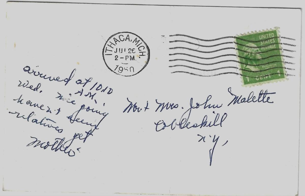Ithaca, Mich Real Photo Postcard from the 1940'd, posted in 1950