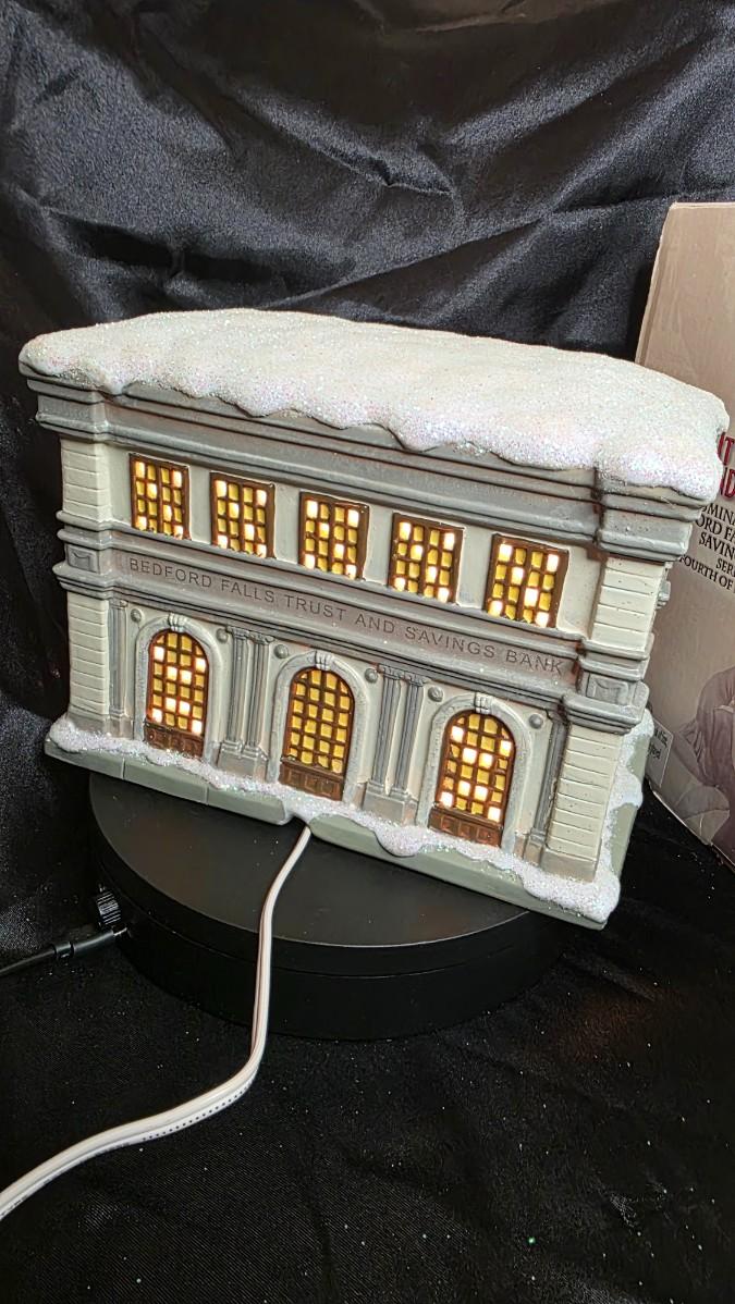 “It’s a Wonderful Life” Illuminated Bedford Falls Trust & Savings Bank – Enesco Holiday Village Collectible