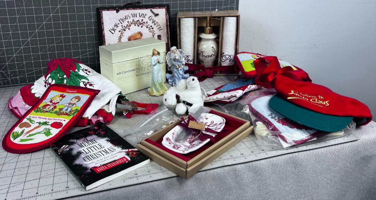 Used and new. Usable. Never to early to Start Gathering Holiday Décor and Goods.