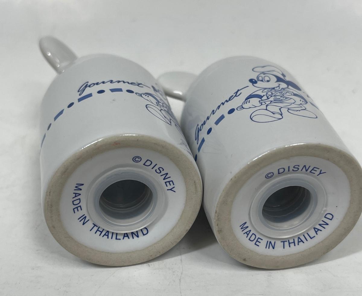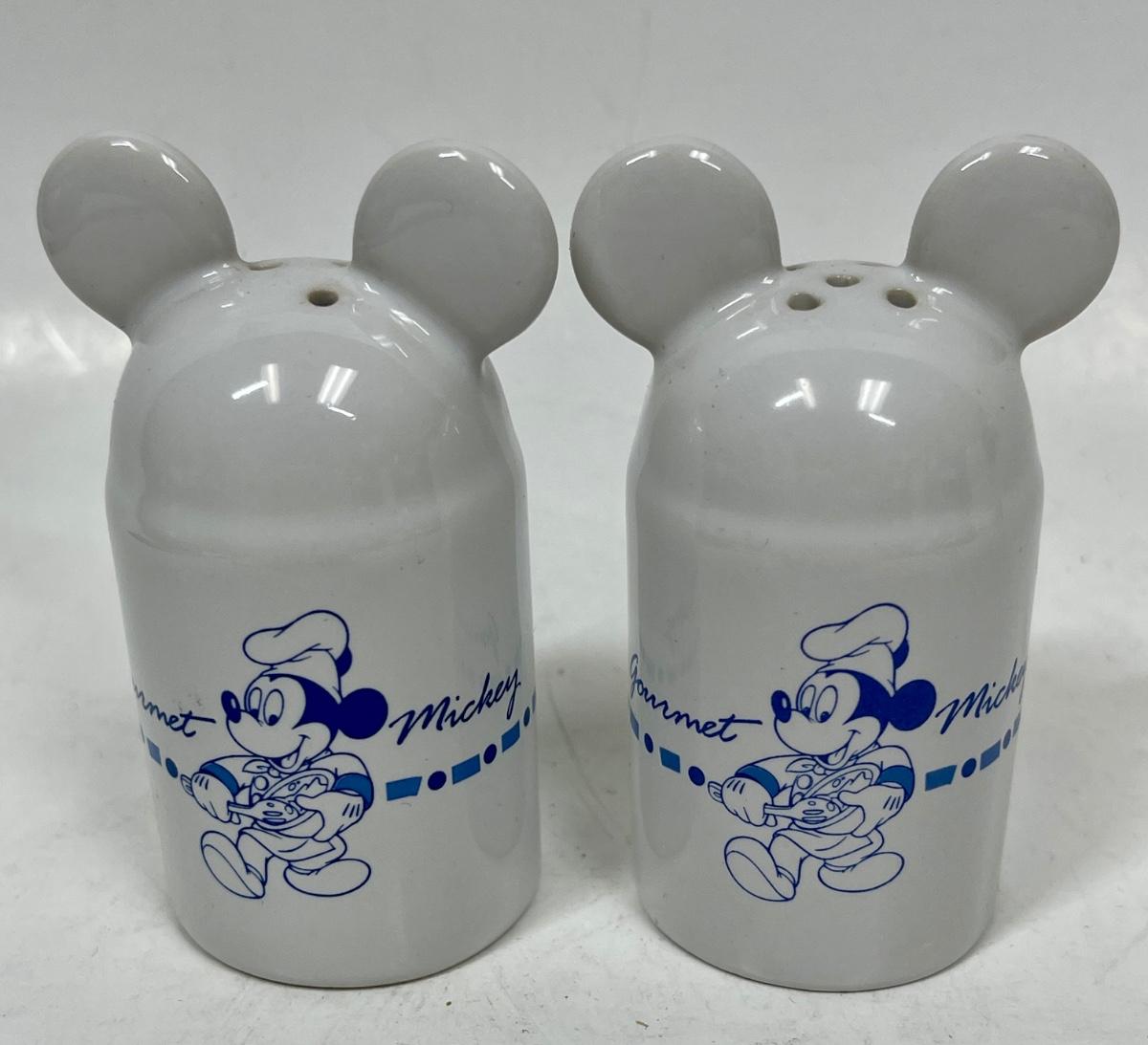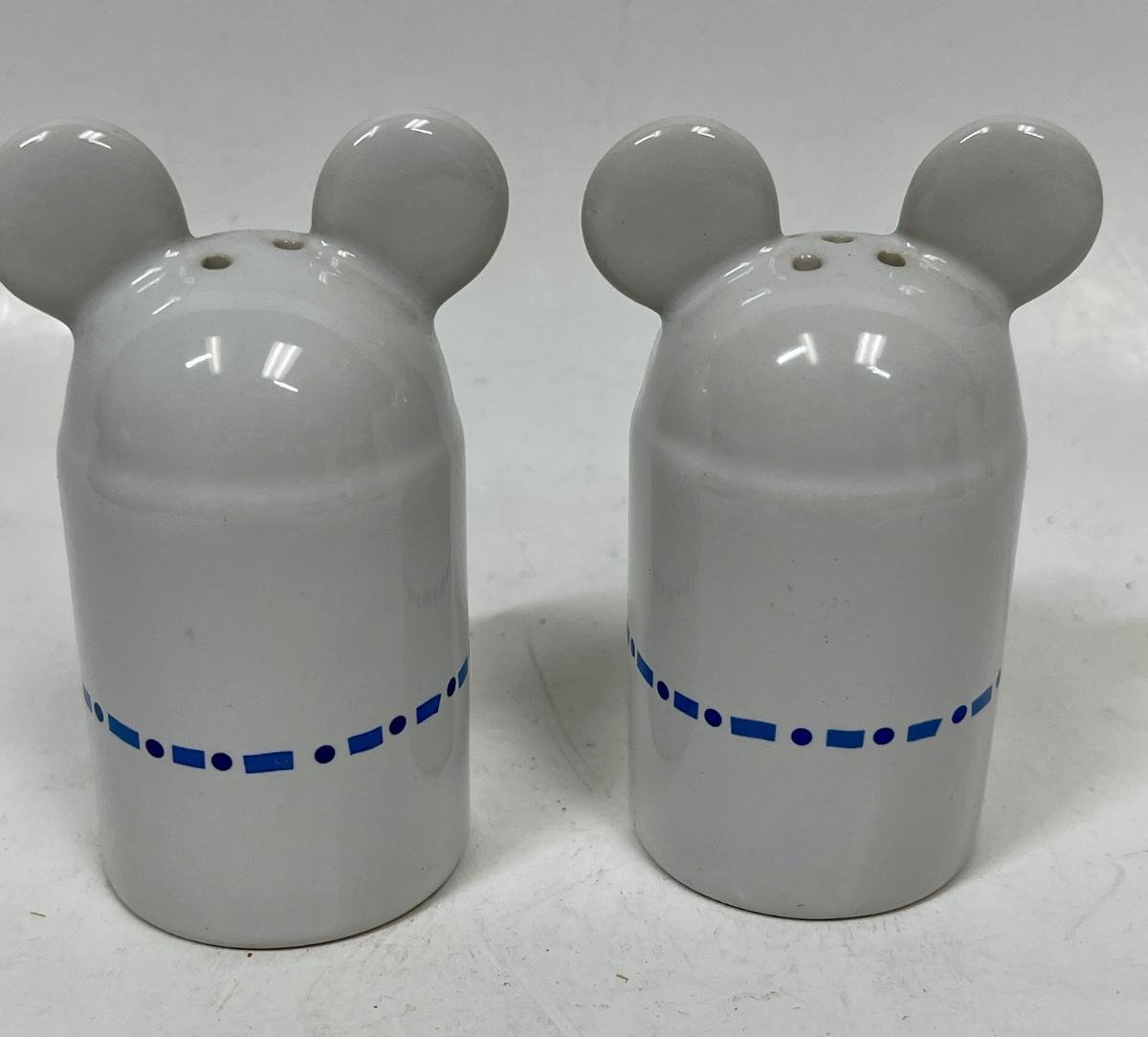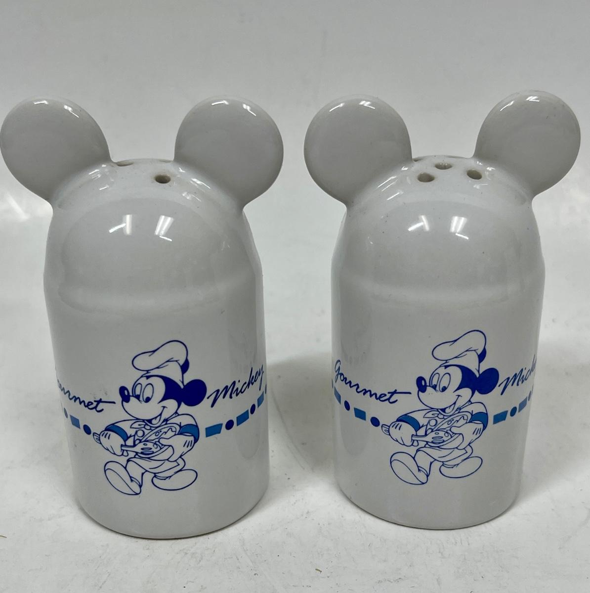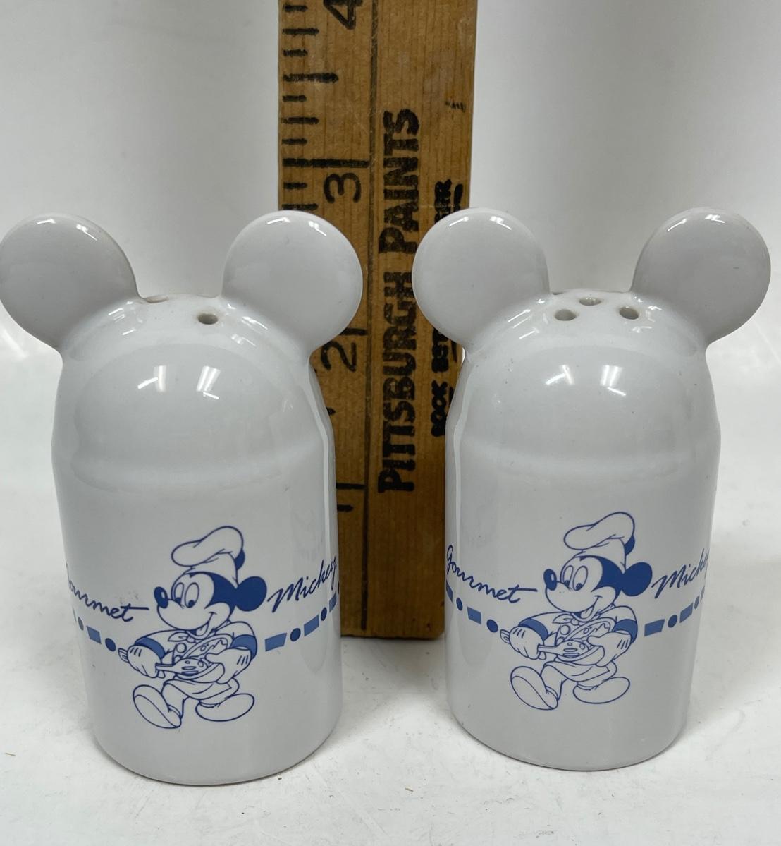 Vintage Pair of Gourmet Mickey Ceramic Salt and Pepper Shakers White and Blue