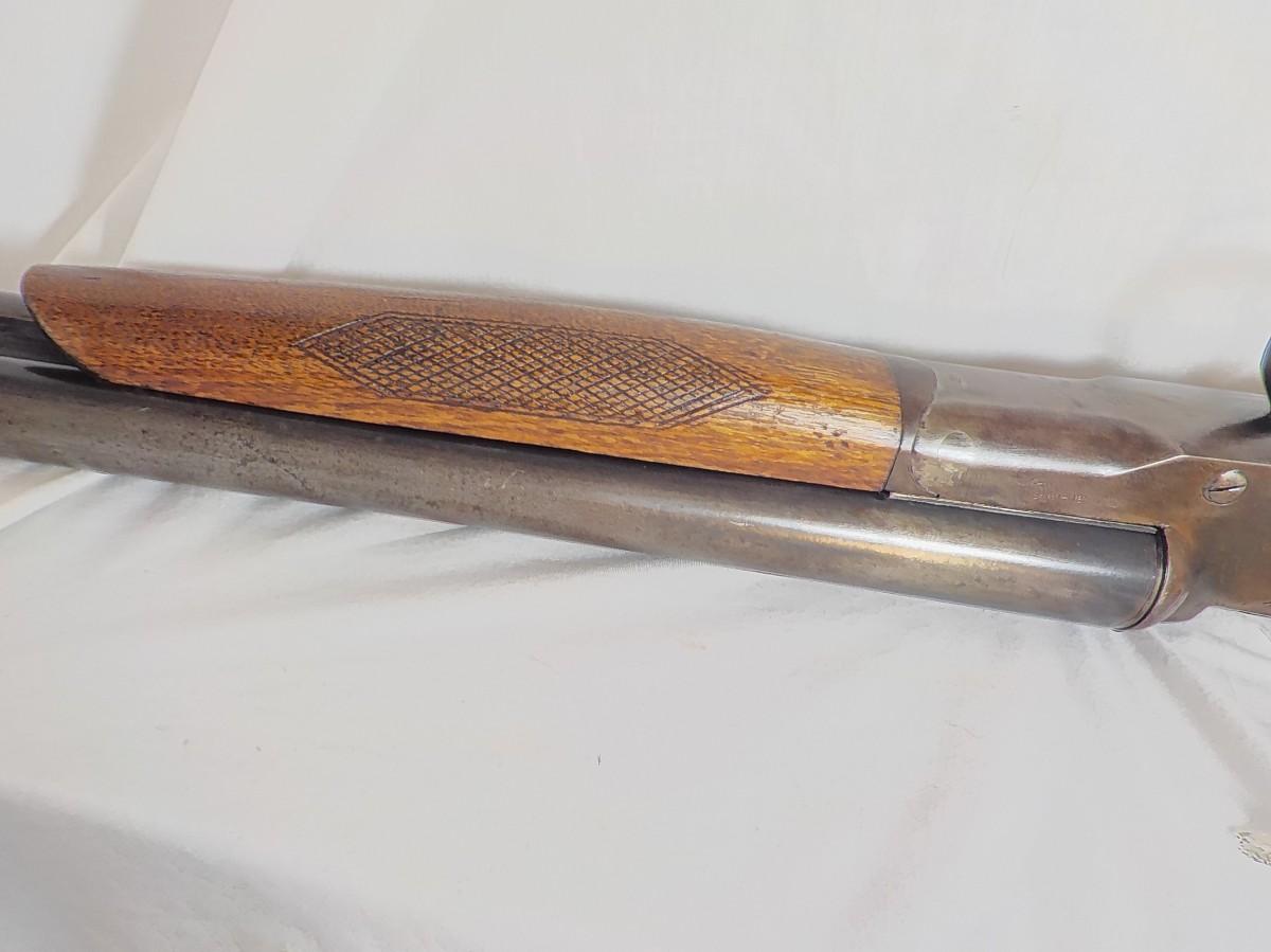 Barrel 18.4 in and over all length 26 inches.....super cool looking not for the rightest gun haters ....home invasion at 2 am and the owner walks out with this and police are 10 mins out...........smooth barrel bore some patina on outside...Unless otherwise noted, all firearms are assumed to be functional but have not been individually fired/ tested by a qualified Gun Smith., if you have any questions or concerns pls have firearms checked by your gun smith.