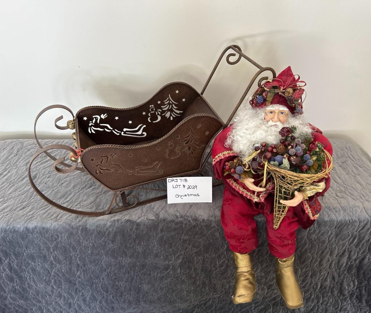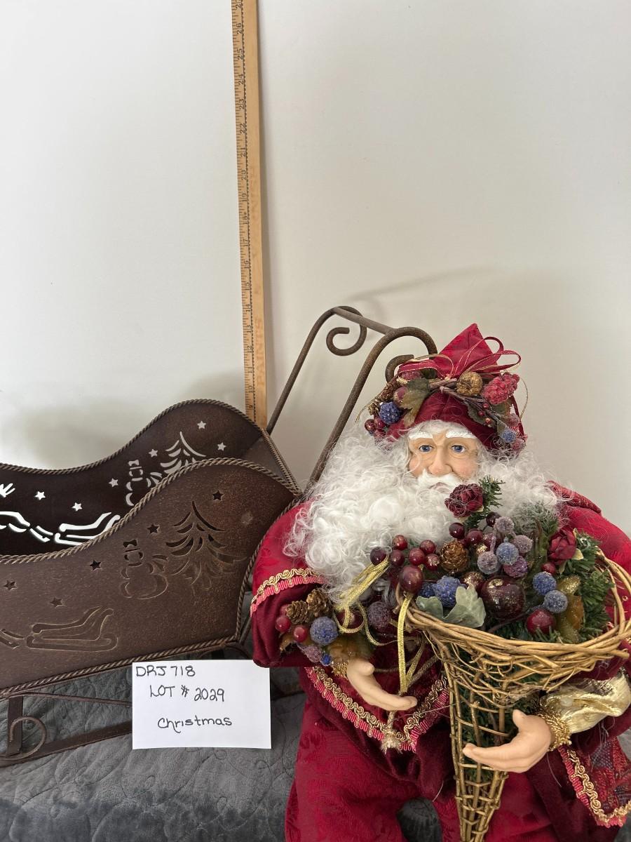 This unique Santa can sit anywhere with his beautiful cornucopia basket he is holding full of colorful fruits.