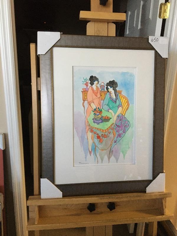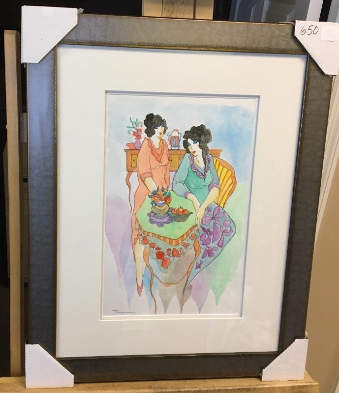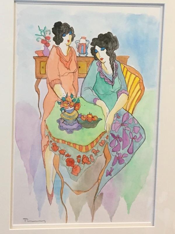 ITZCHAK TARKAY “Tea for Two” Original Signed Watercolor. LOT C5
