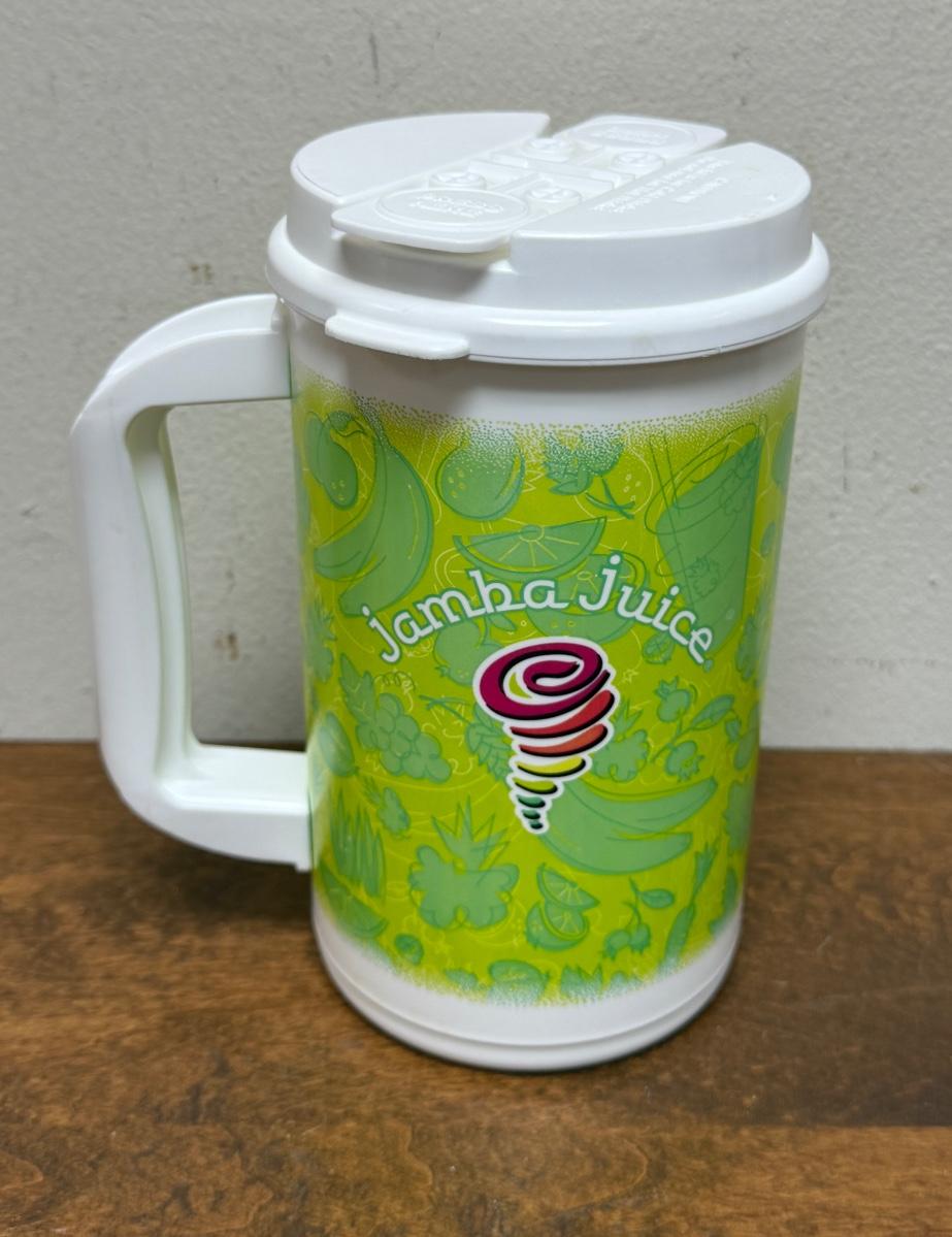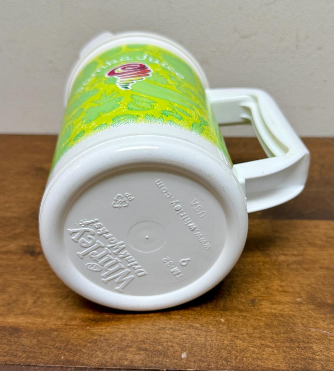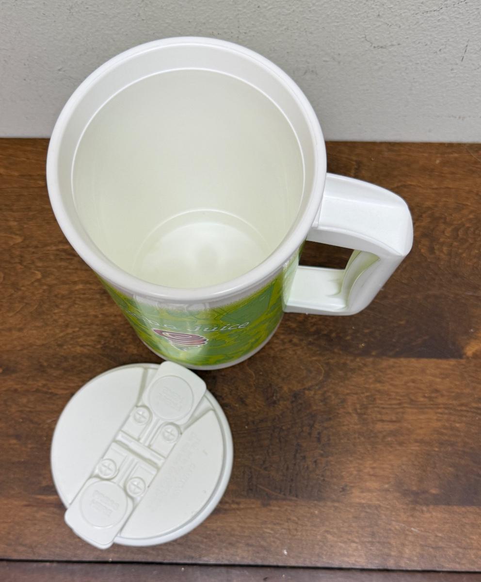 2-tone green design. Large solid handle, snap-on lid. Good condition.