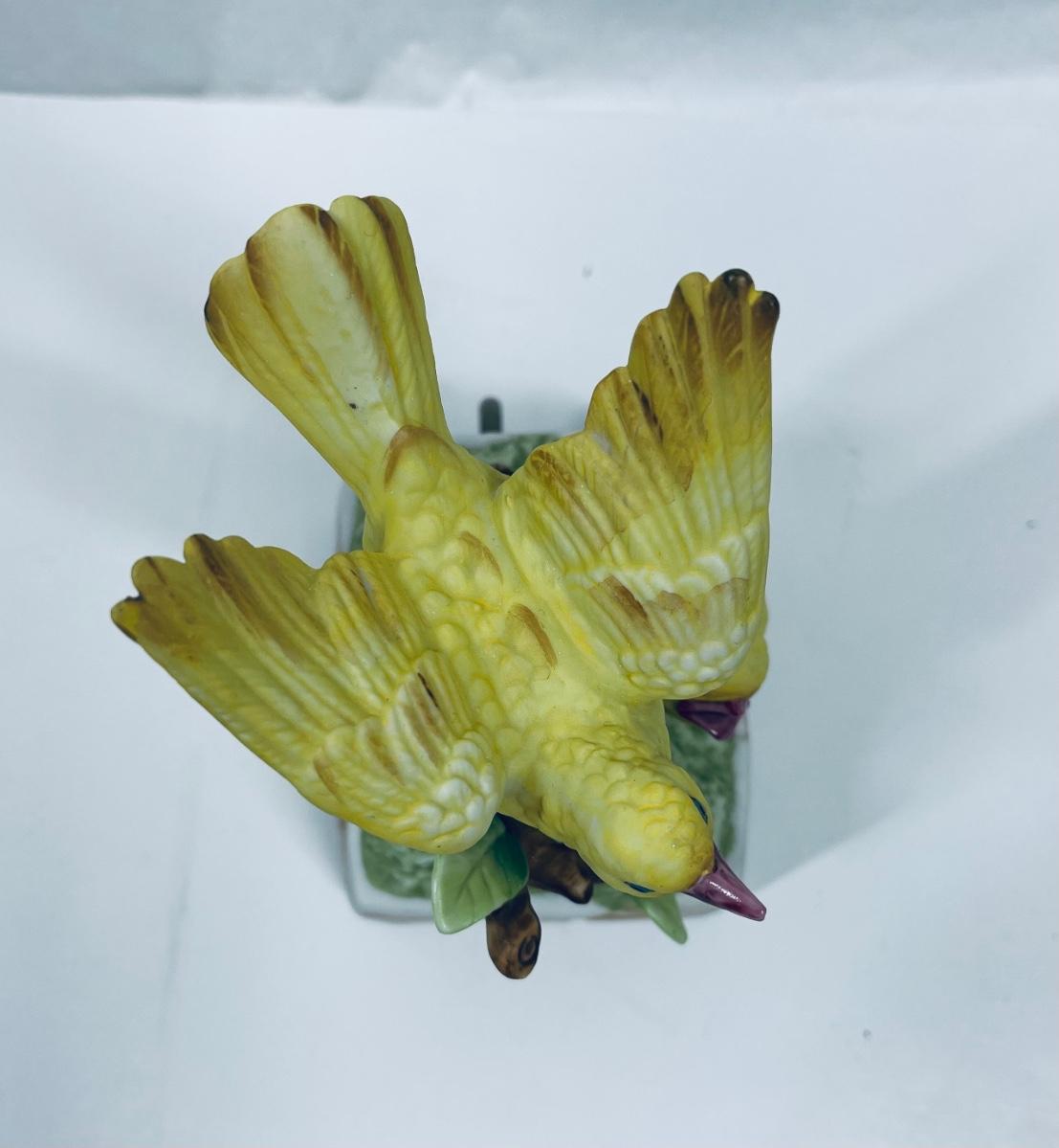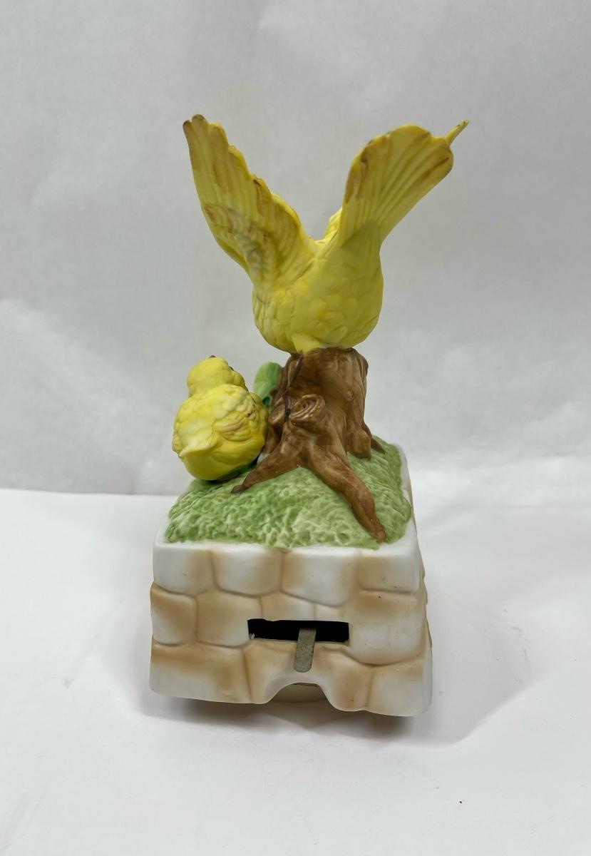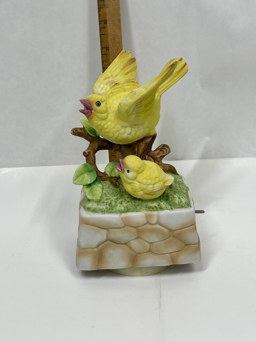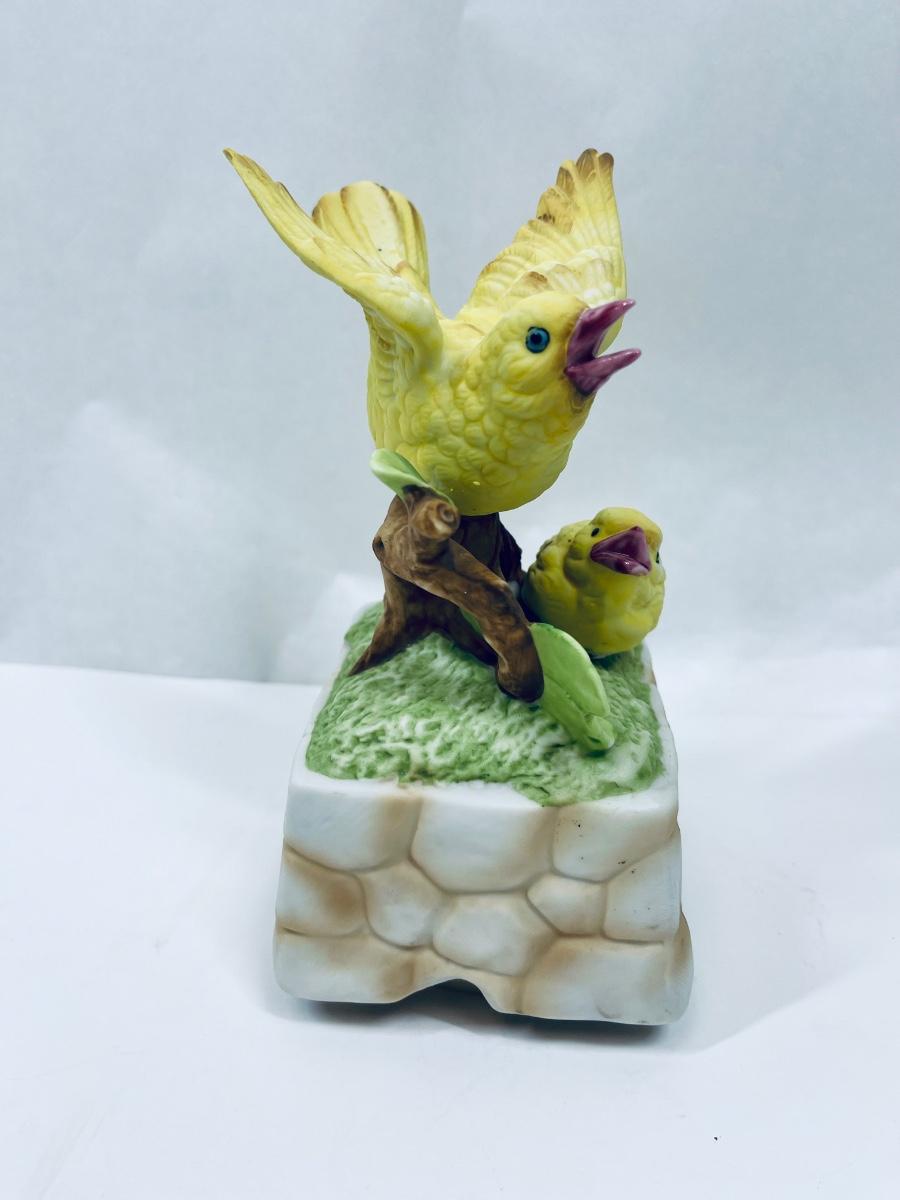 Bisque Porcelain Music Box Figurine 2 Yellow Birds Parent & Child - no music