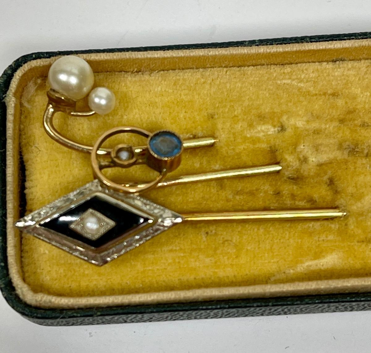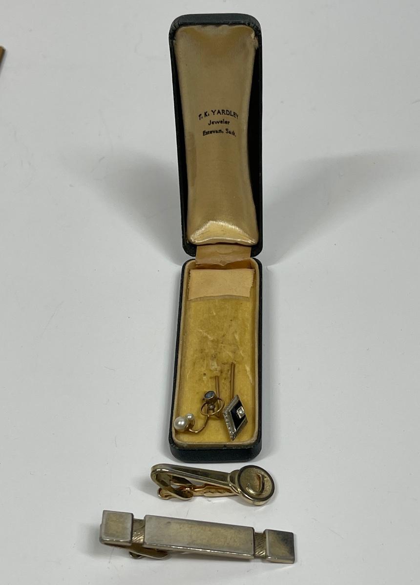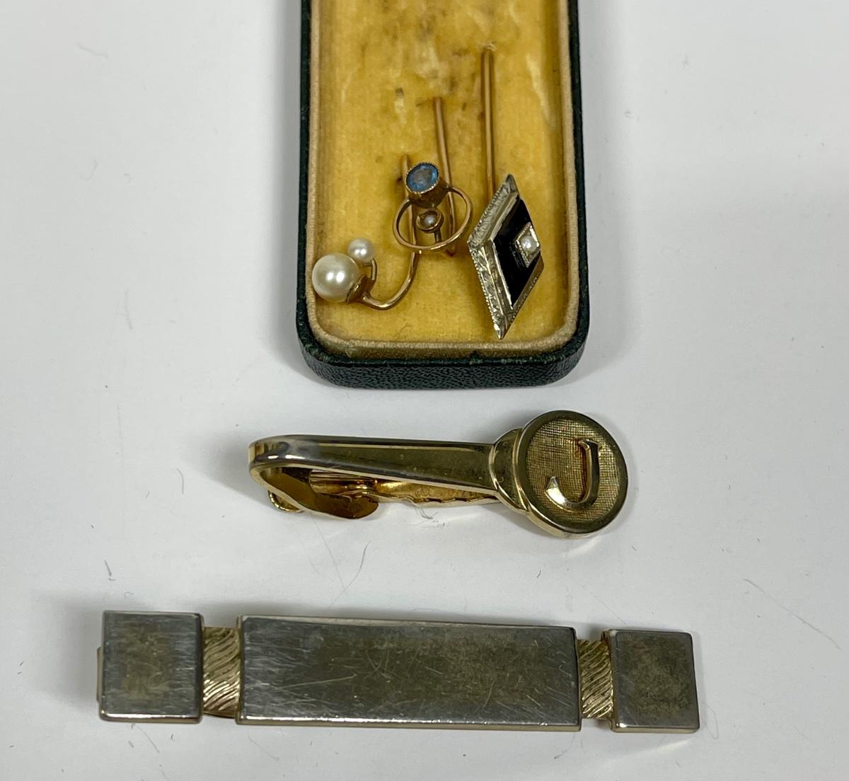 Vintage Stick Pins and Tie Clips in Case