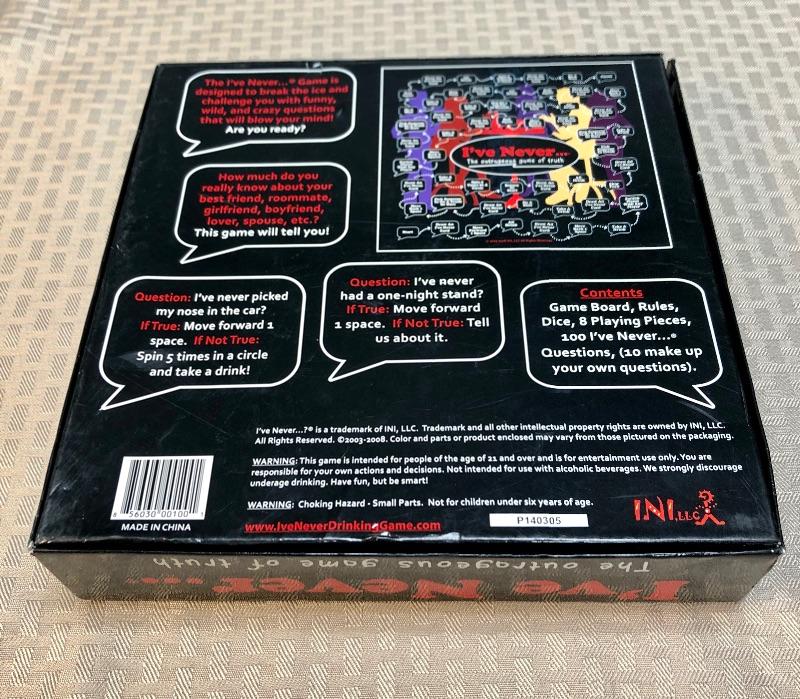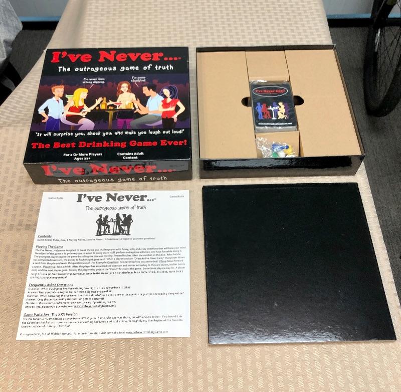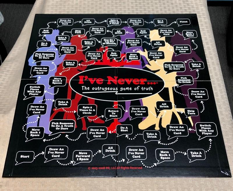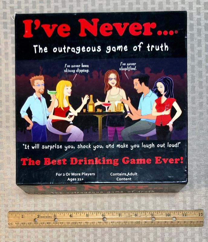 I've Never.. The Outrageous Game of Truth Adult 21+ Drinking Board Game. Complete with instructions, game pieces and cards still in plastic. Corner of lid is split.