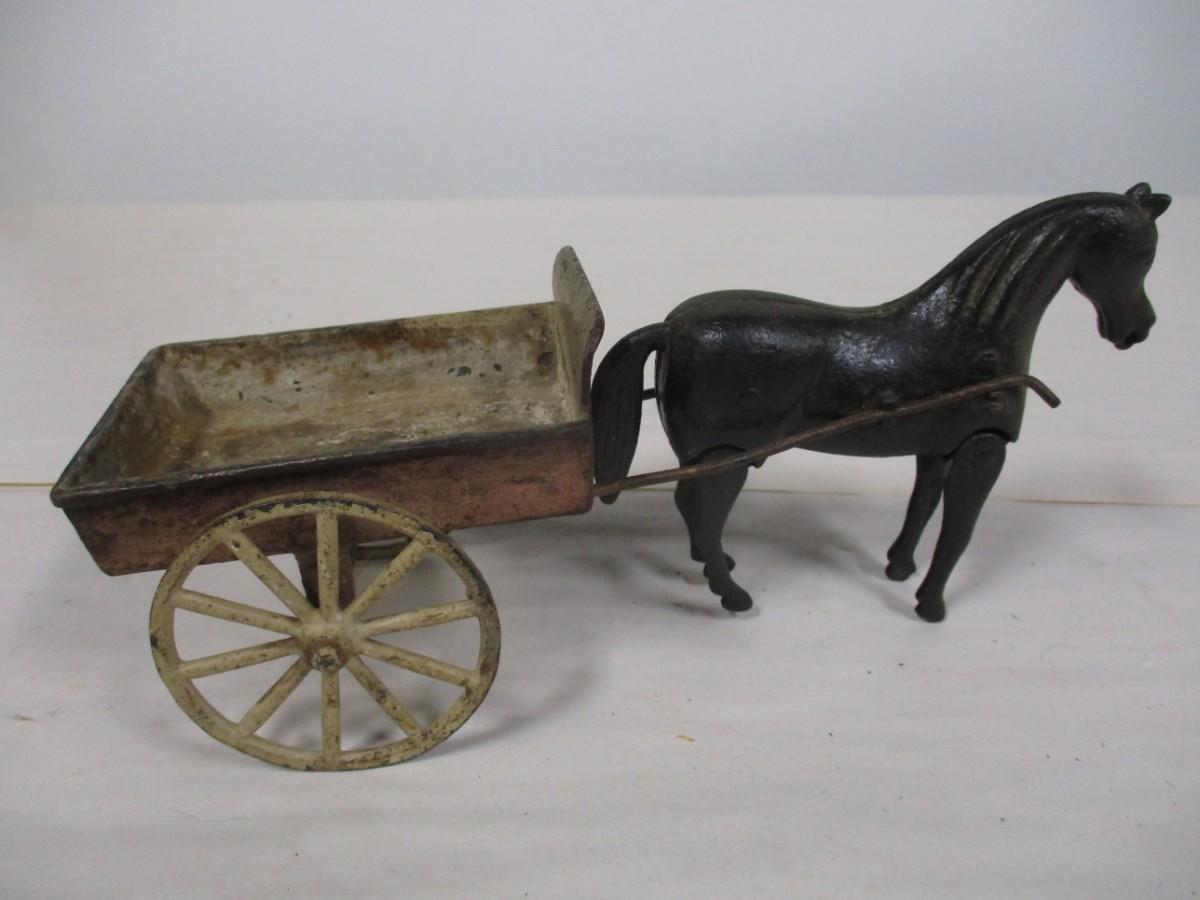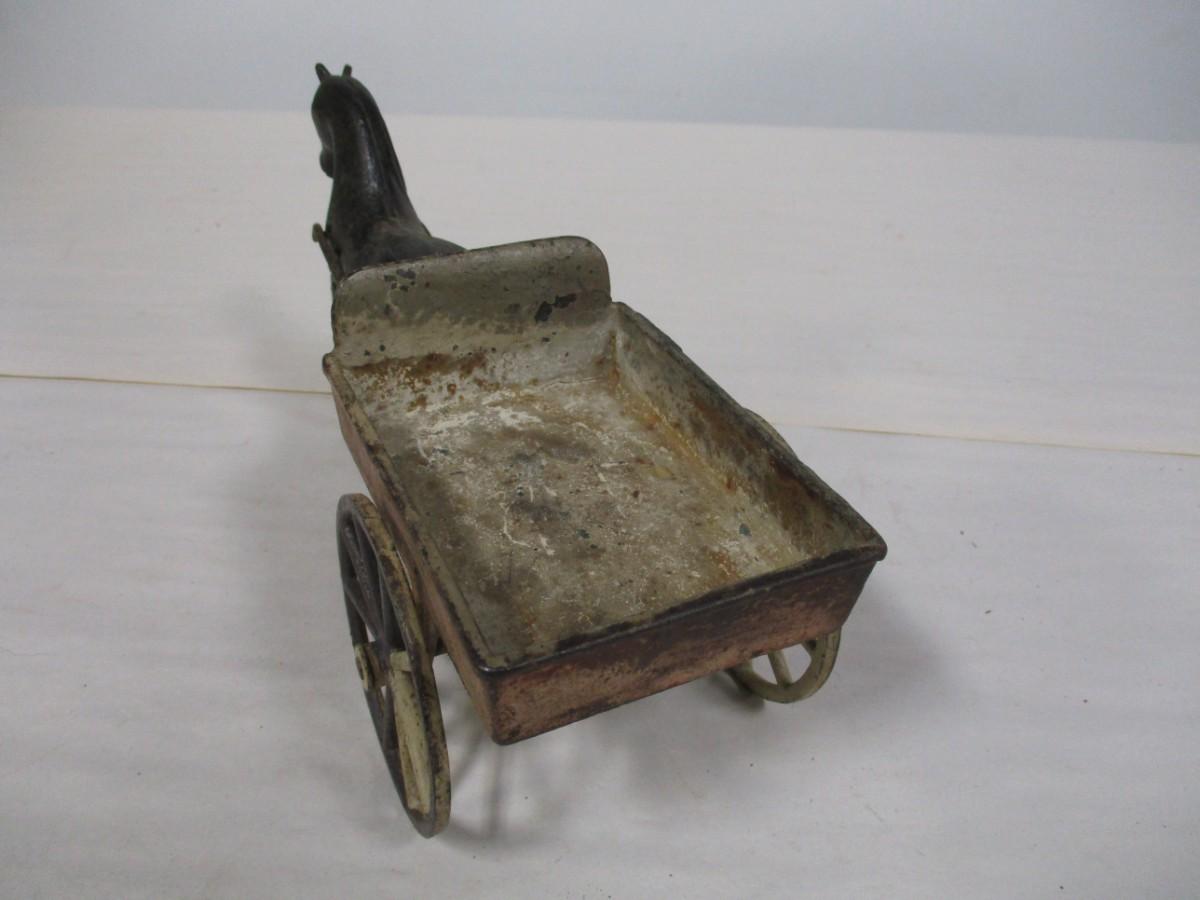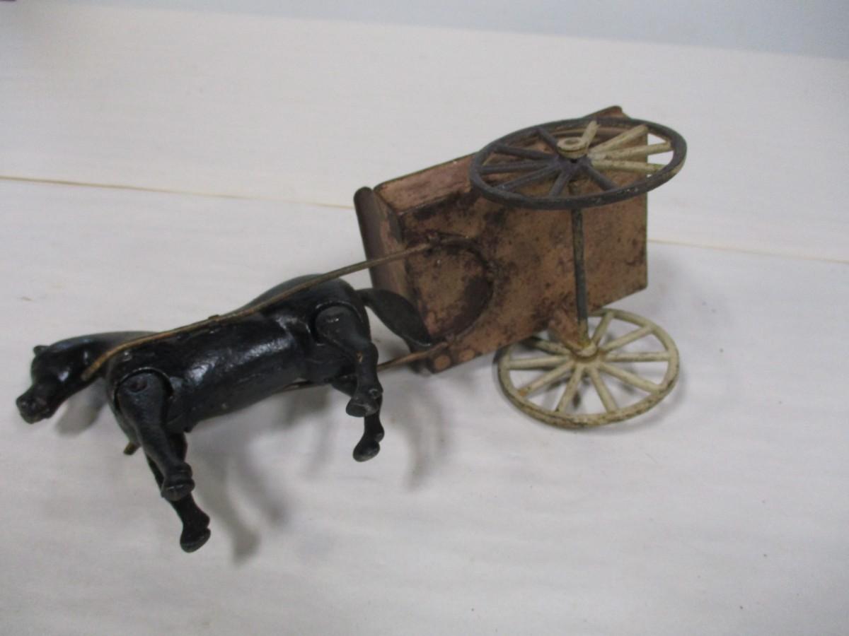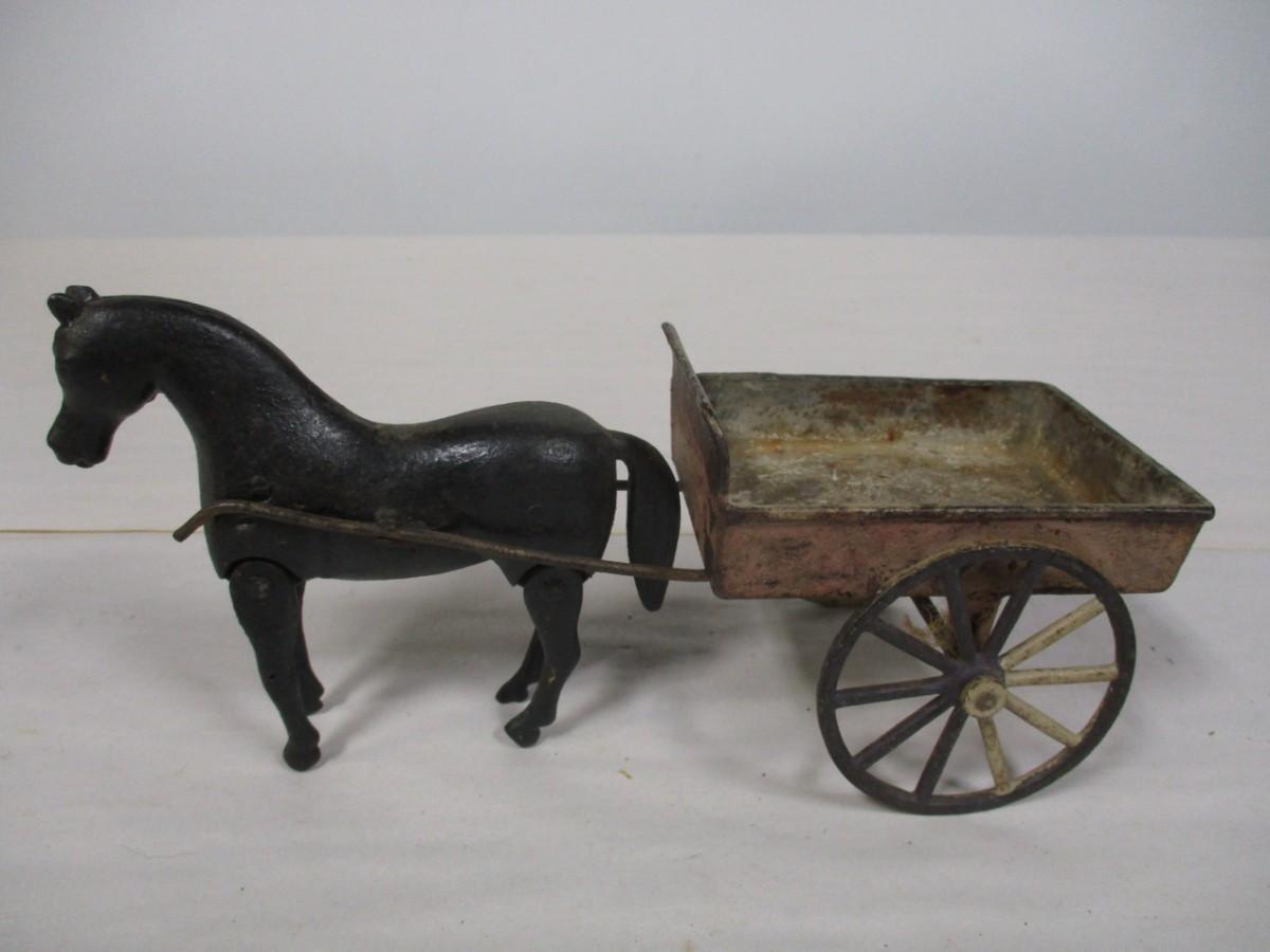 Vintage Ives Mechanical Horse with Cast Iron Cart