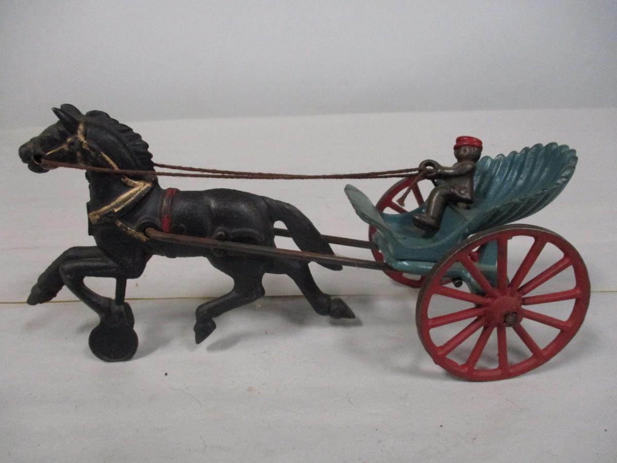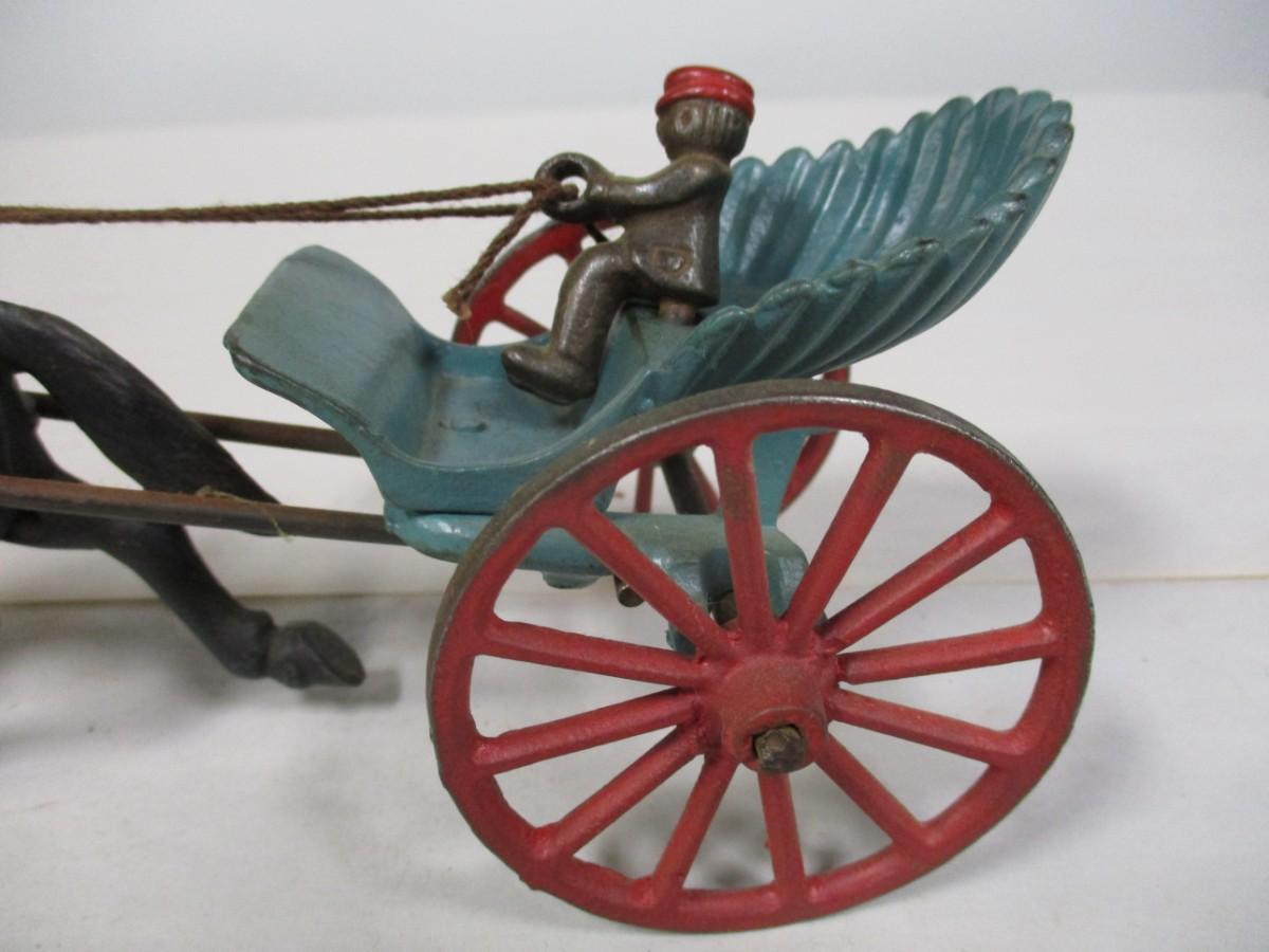 Vintage Ives Horse Drawn Shell Cart with Driver