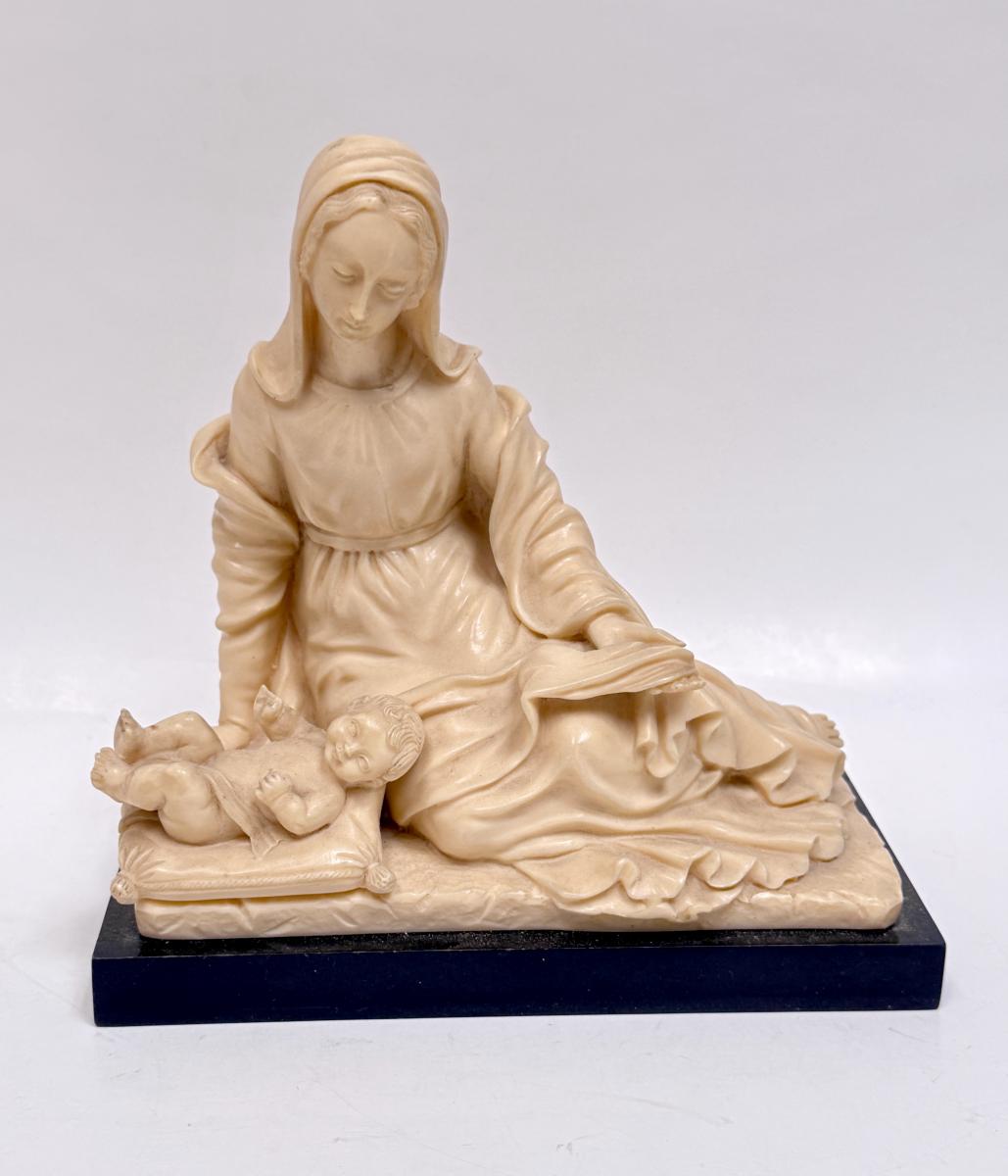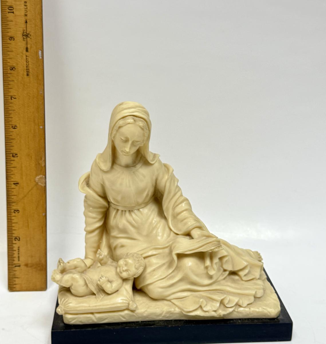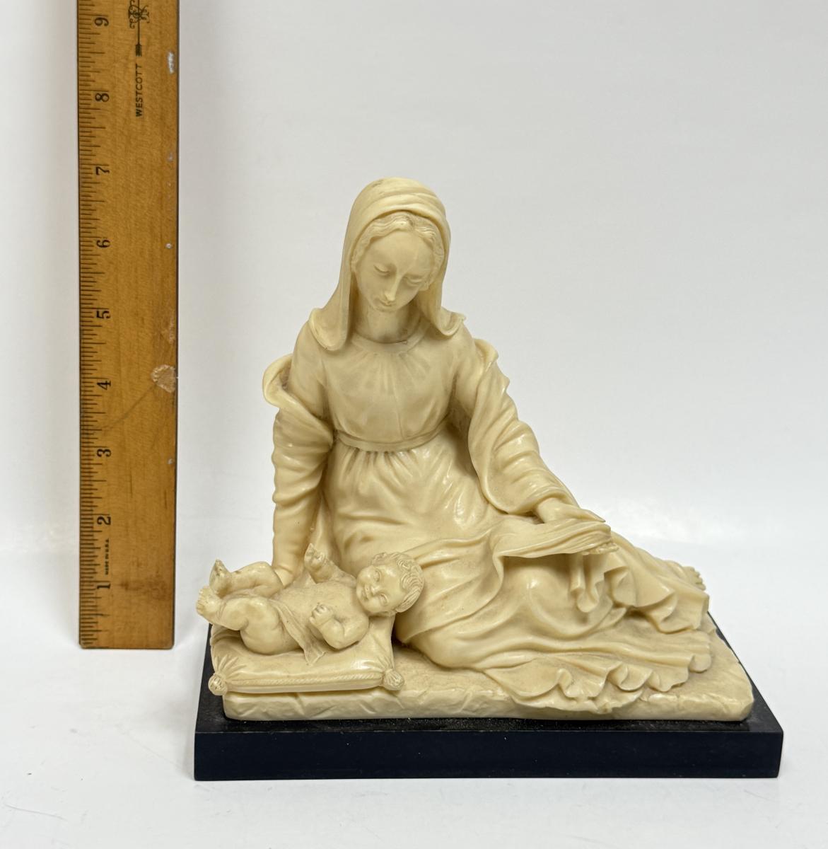 Madonna and Baby Jesus Alabaster Sculpture Figure Marble Base 7 1/2" Tall