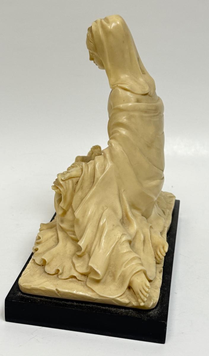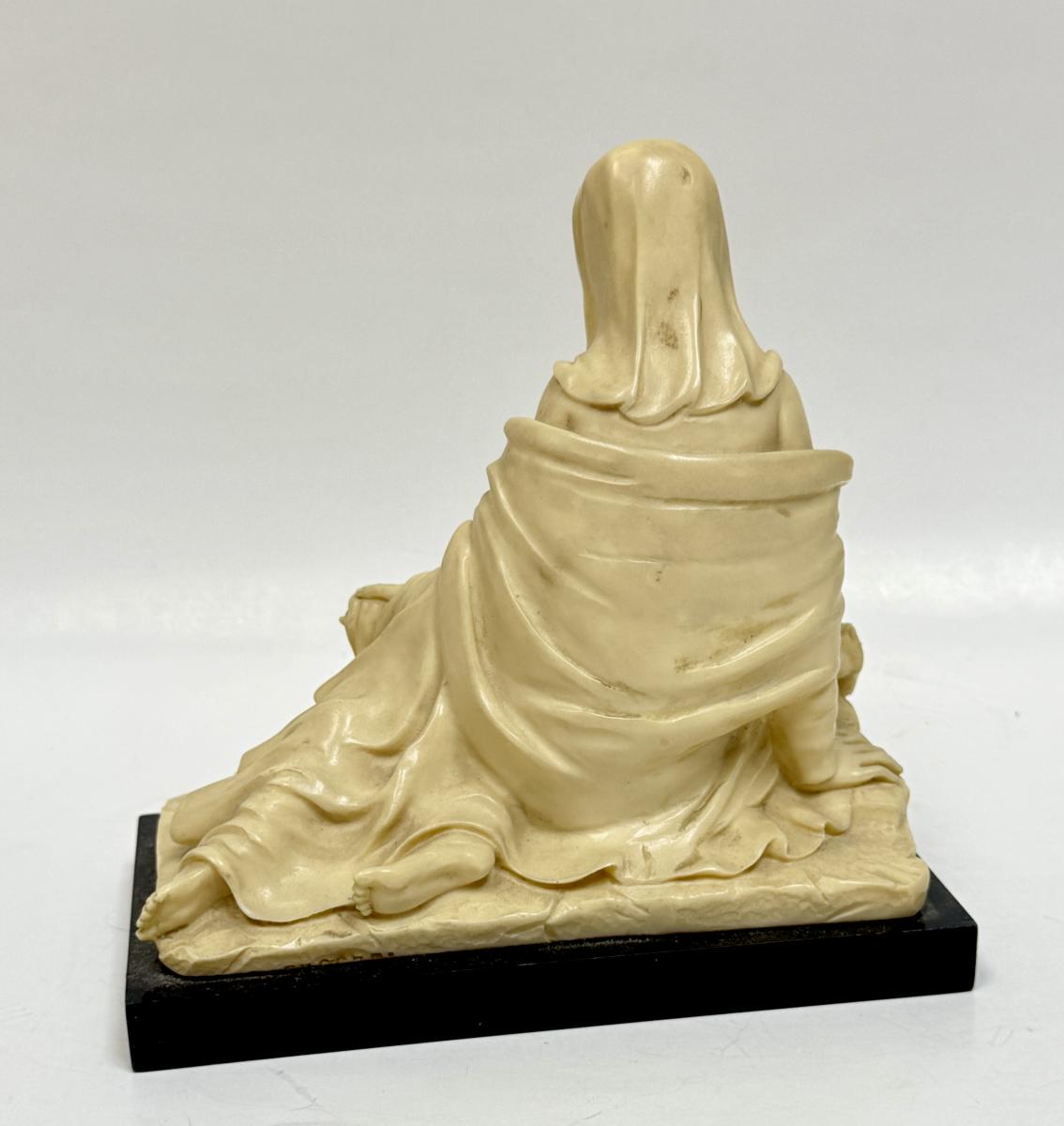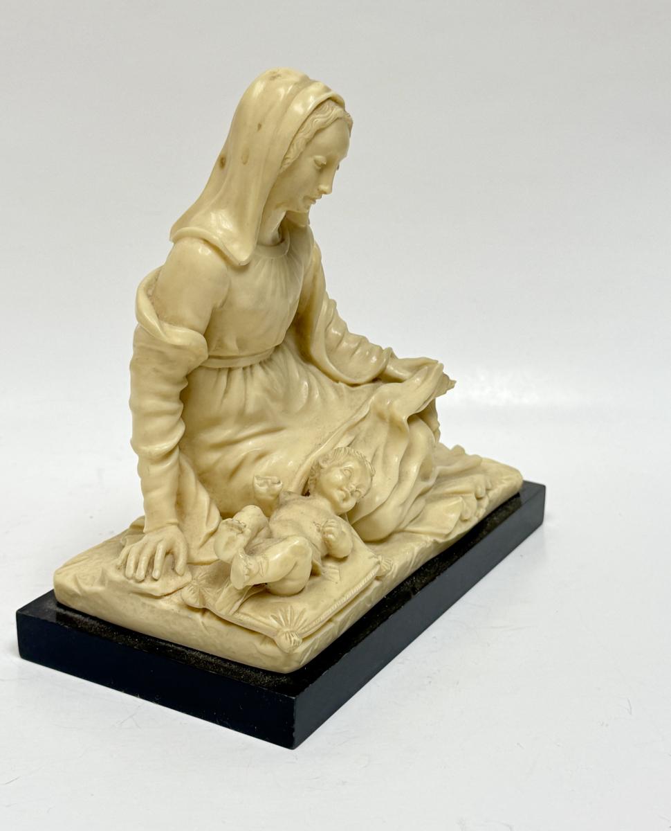 Madonna and Baby Jesus Alabaster Sculpture Figure Marble Base 7 1/2" Tall