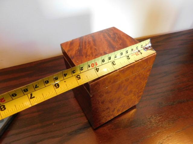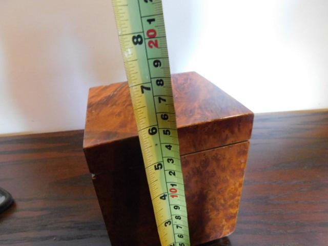 Ivolene Extremely Rare Mid Century Cigarette Dispenser Music Box Maple Wood Vaneer 5"x6" has some scratching to the finish but has a nice wood grain finish and very appealing.