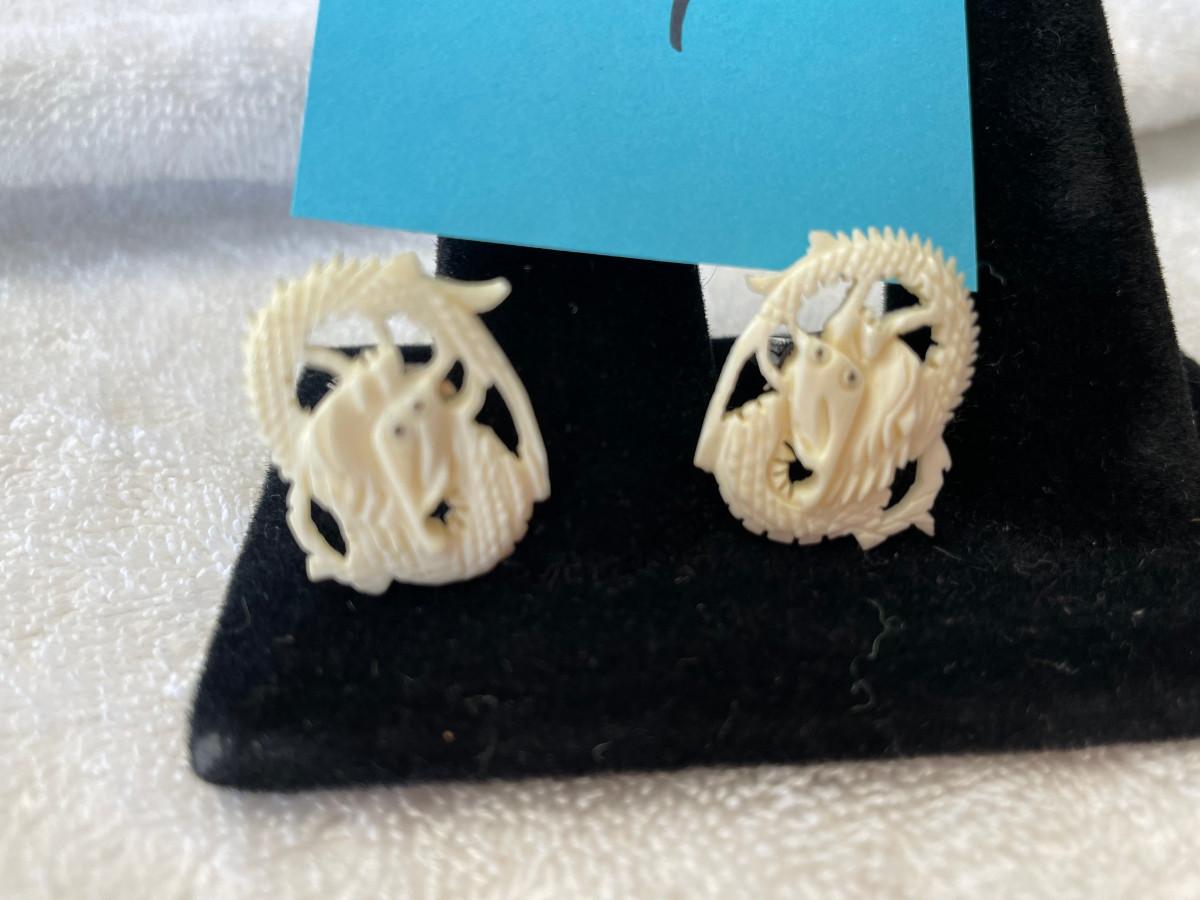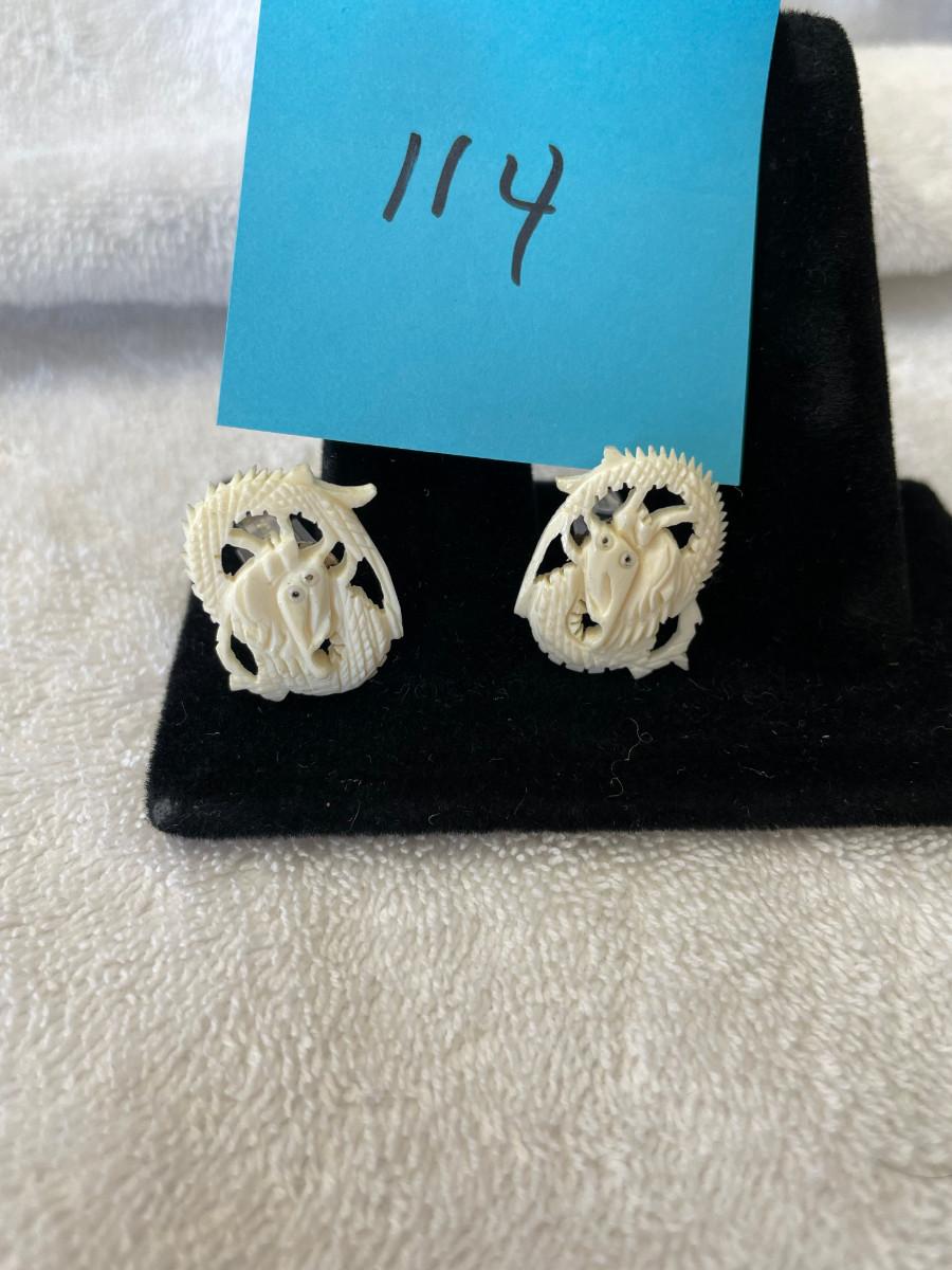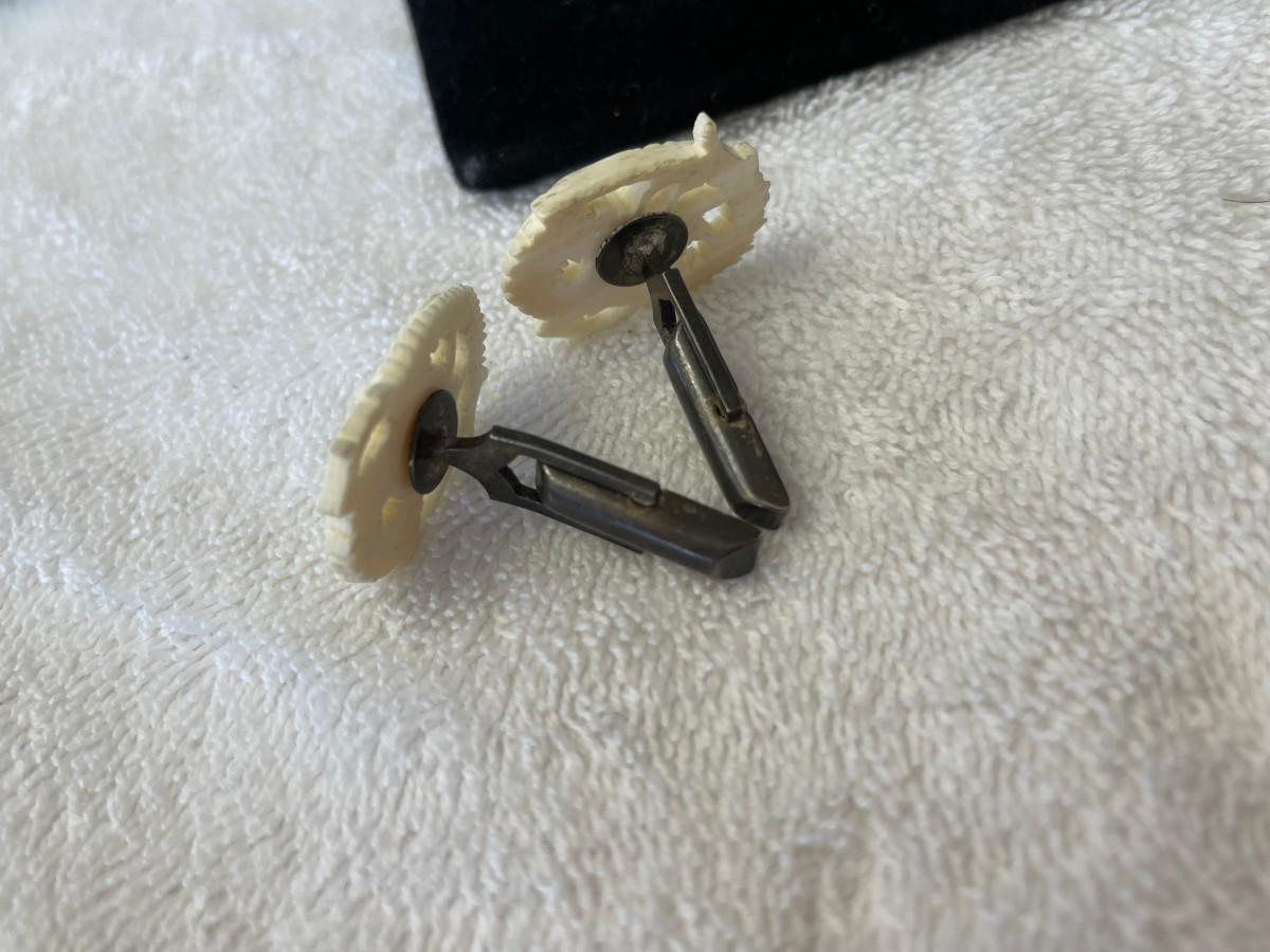 Ivory Carved Dragon Cuff Links on Sterling
