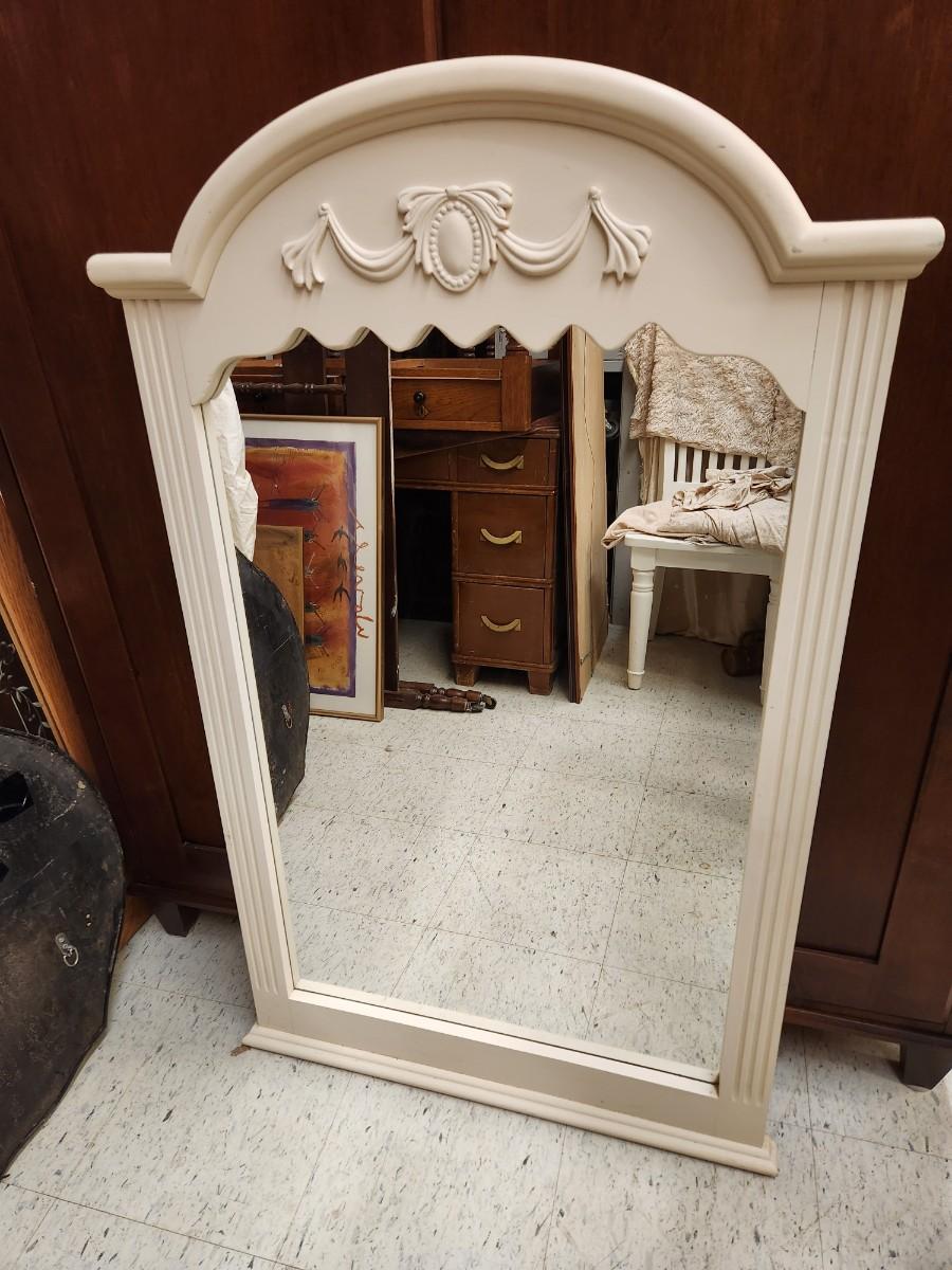 Mirror for on top of a dresser....does not have hooks or hangers on the back. 46.5"x29"