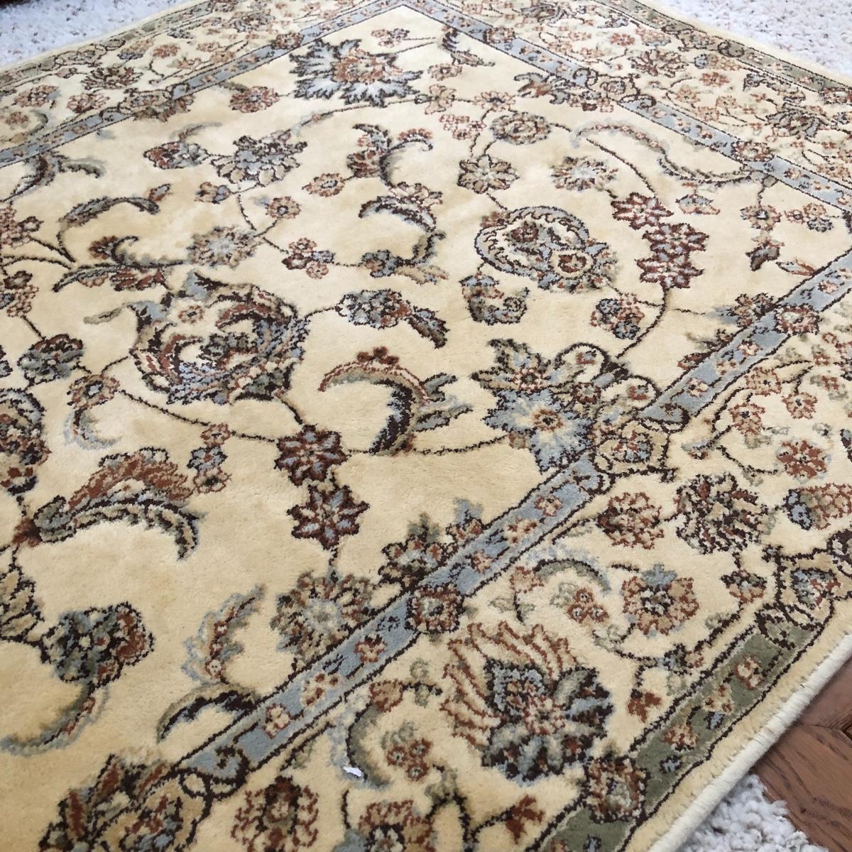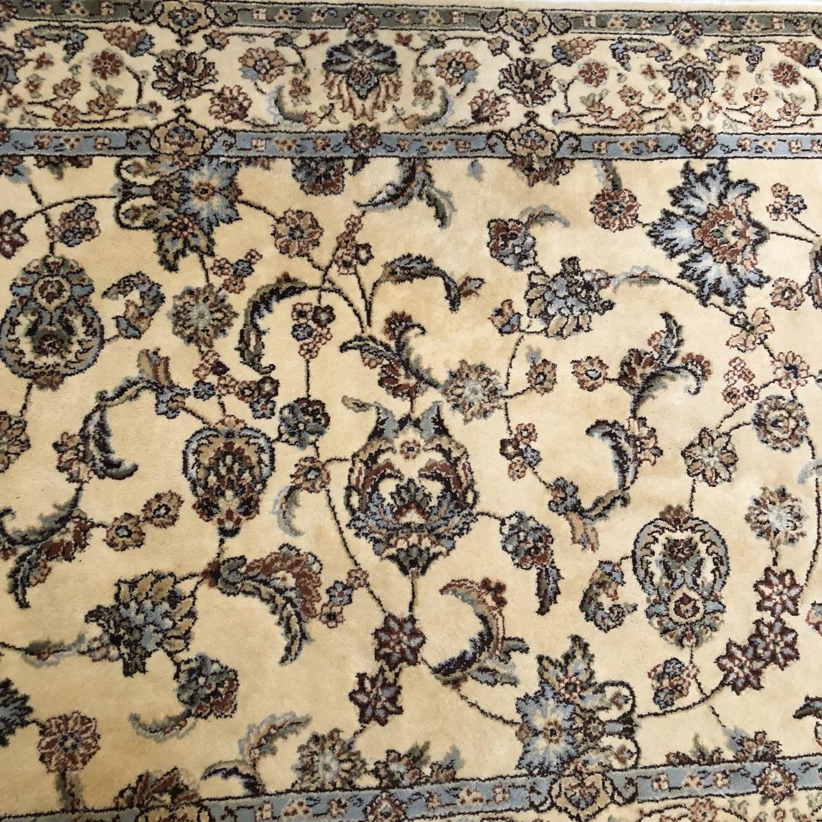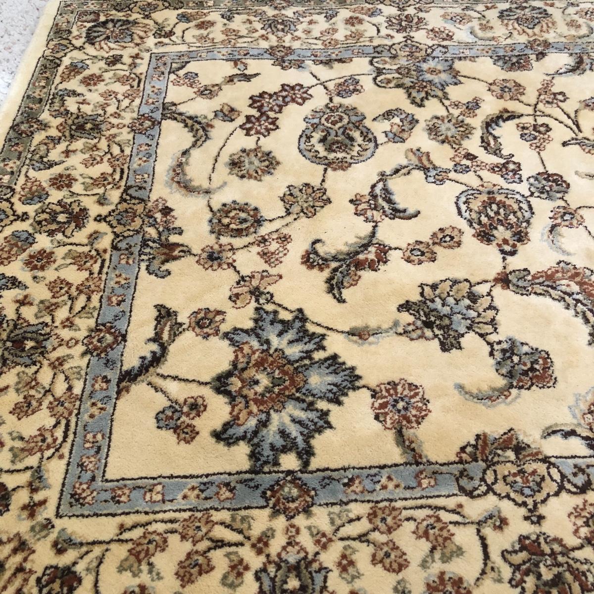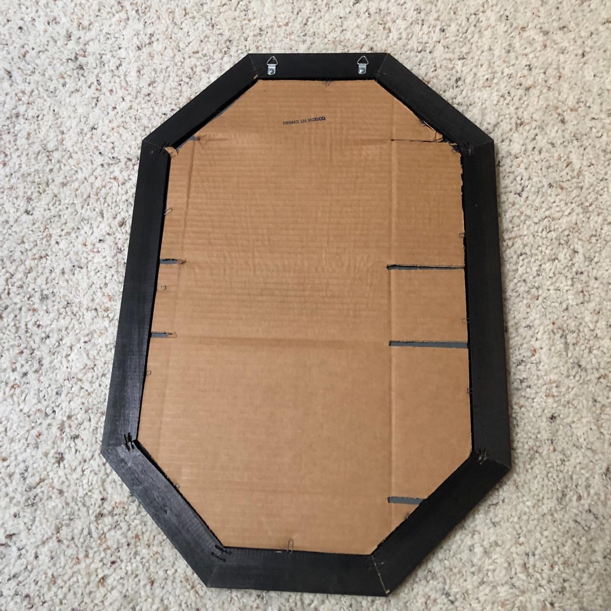 Rug measures 3ft 3in x 4ft7in; mirror measures 17” x 25”. Rug is 100% viscose. Local pick up only.