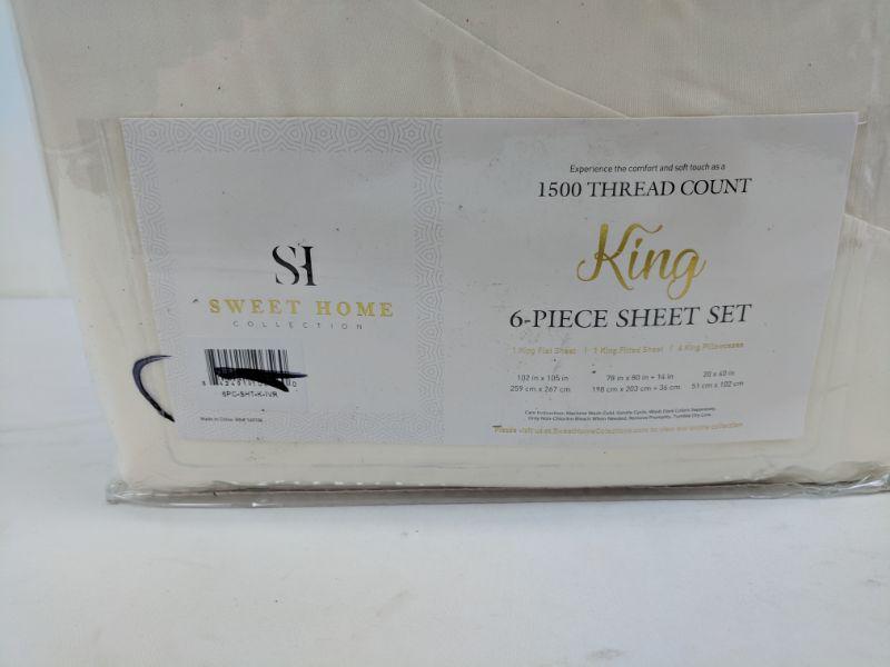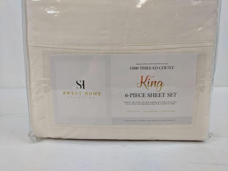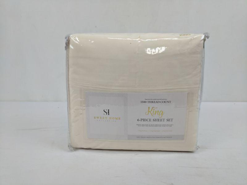 Ivory King 6PC Sheet Set, 1500 Thread Ct, Flat/Fitted/4 King Pillowcases - New