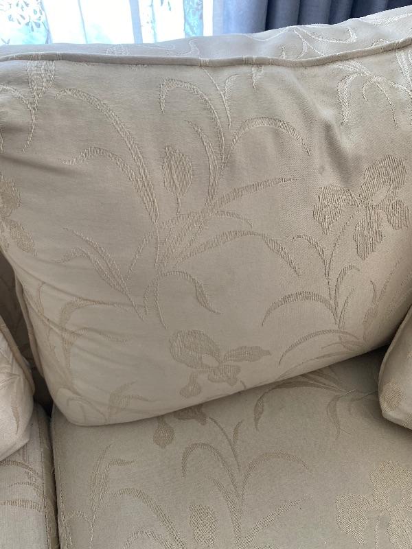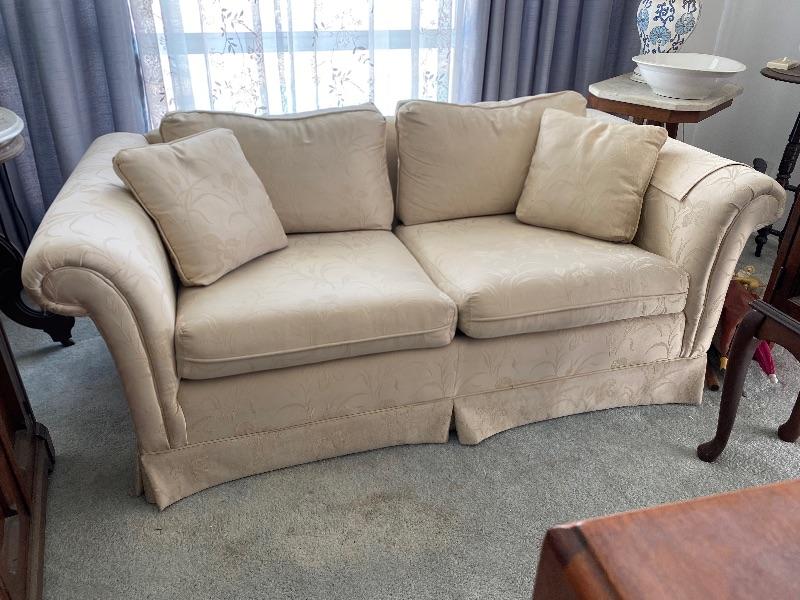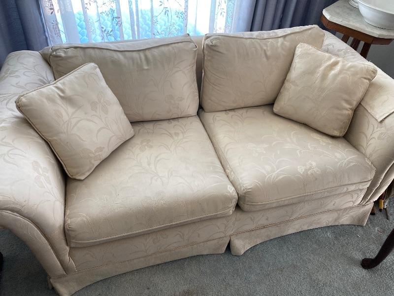 Ivory/ off white love seat. Good condition, no rips, tears, or odors. Measures 70" length