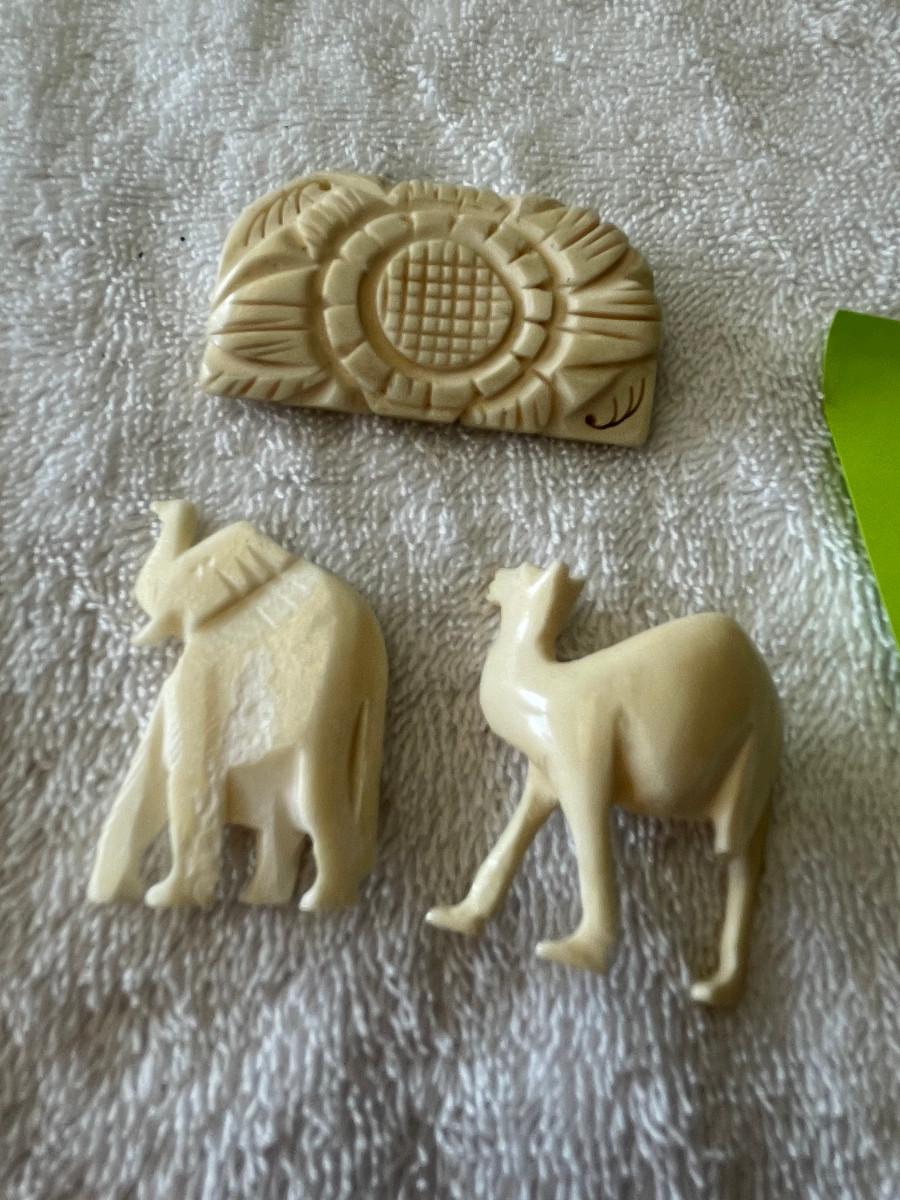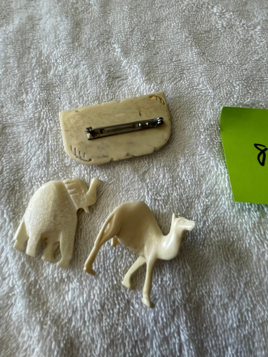 The brooch is 1920s. Camel has one leg broken. The animals are