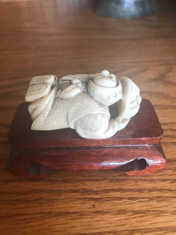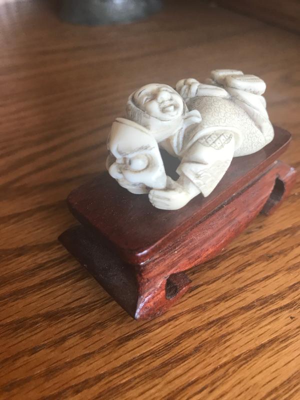 Ivory-like (bone?) Asian Figurine w/ Stand (Item #702)