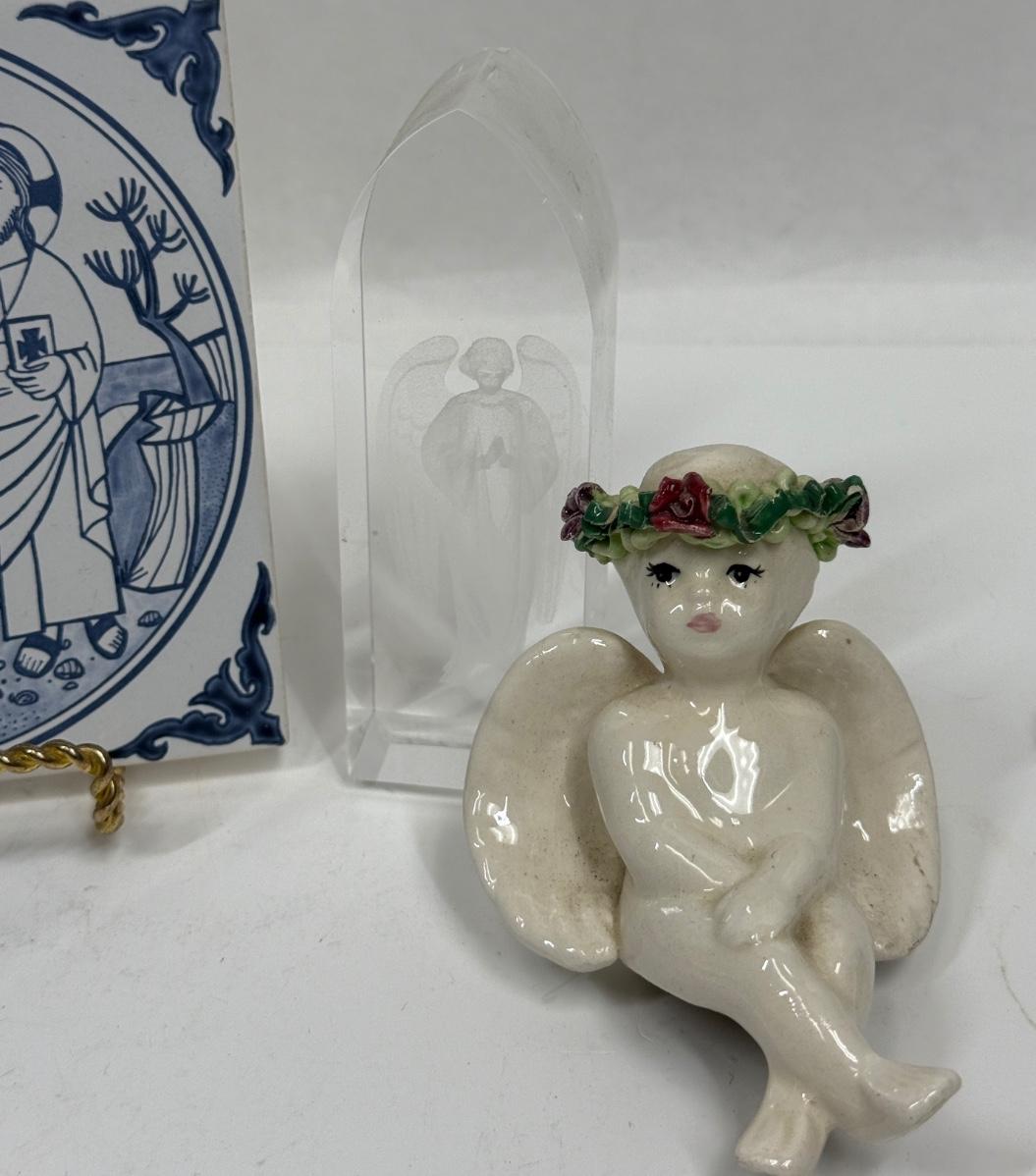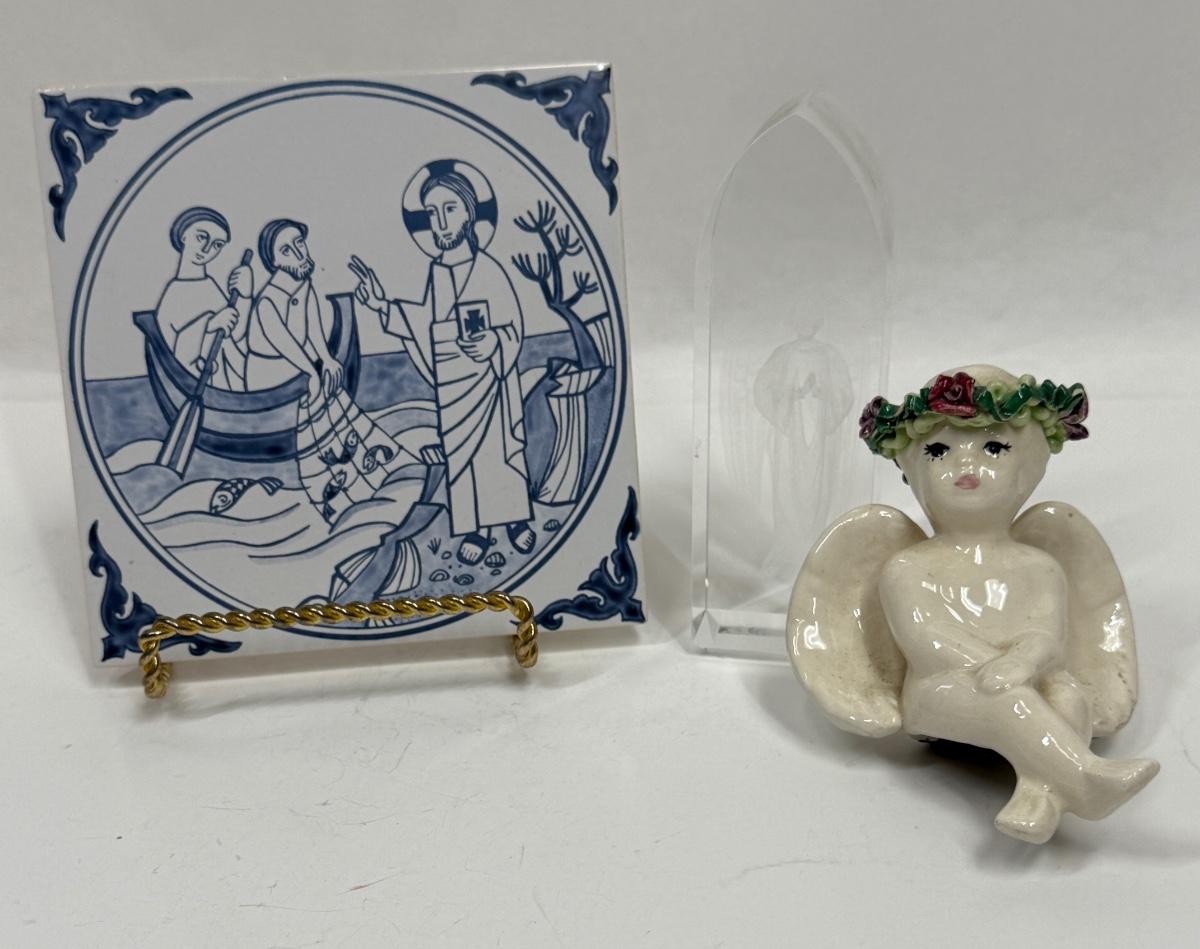 Religious BricBrac - figurine, Crystal Etching, & Tile