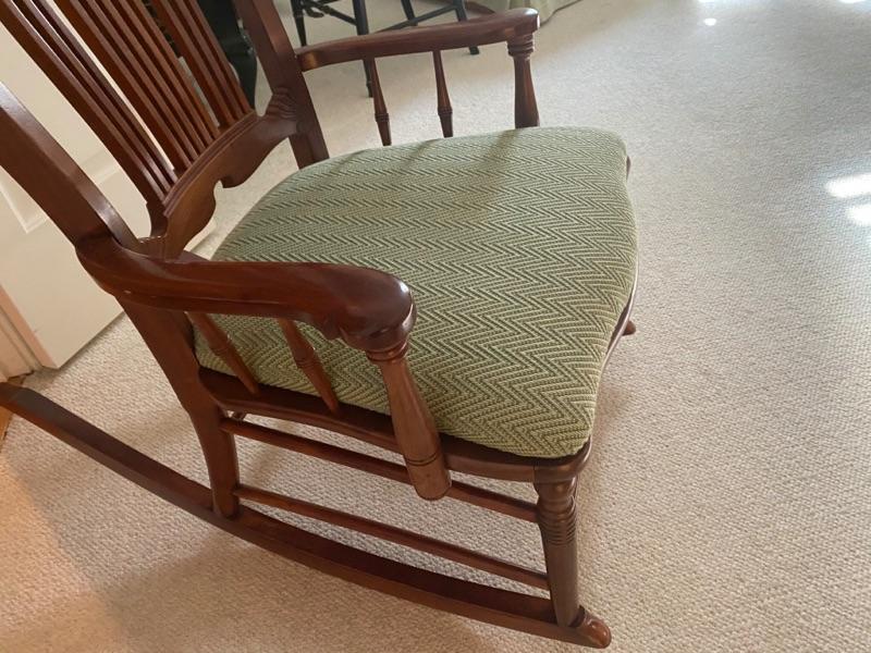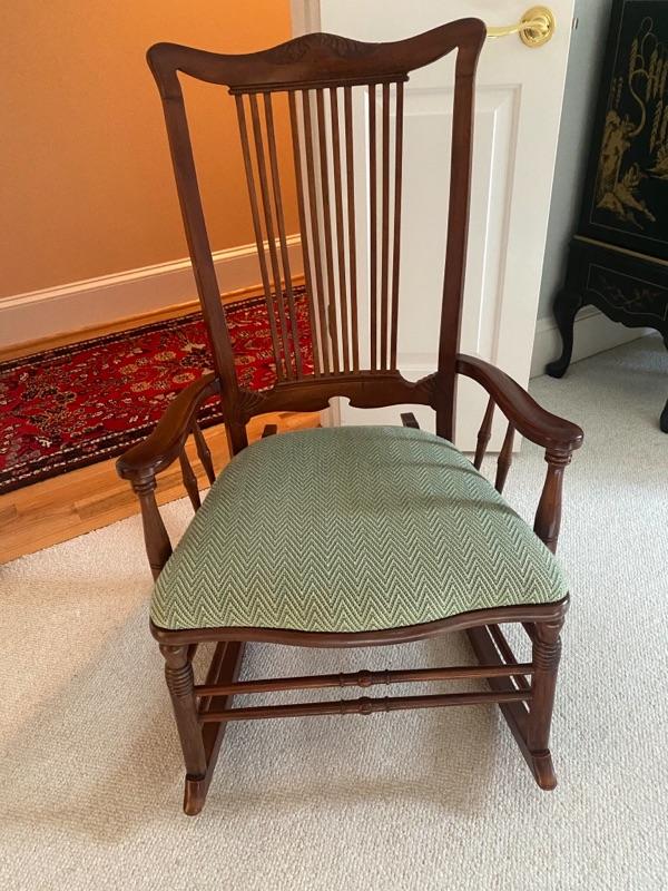 J - 1136 Antique Mahogany Green Upholstered Rocking Chair