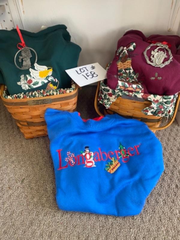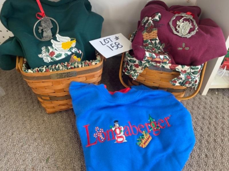J - 158 Longaberger Baskets filled with Longaberger Sweatshirts & Ornament