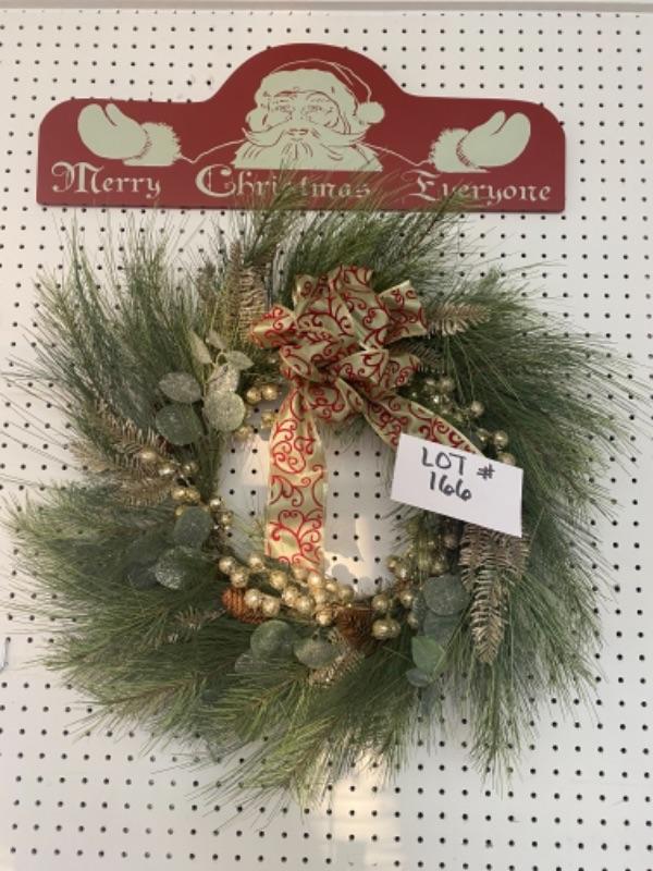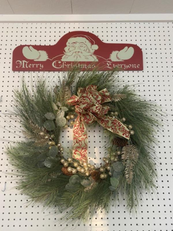 Merry Christmas Everyone Sign with Faux Christmas Wreath