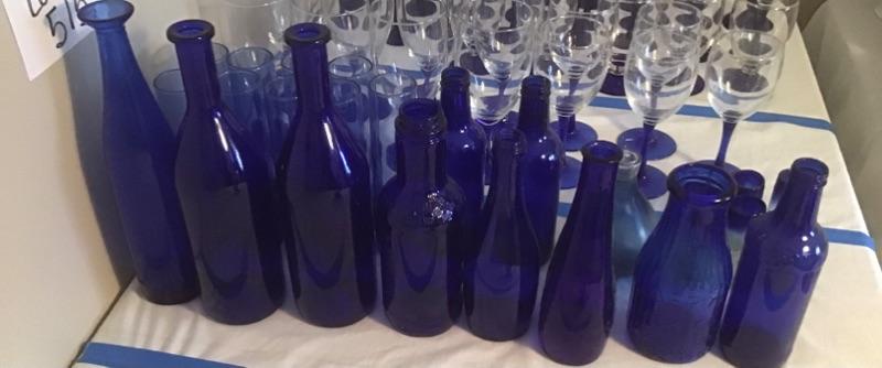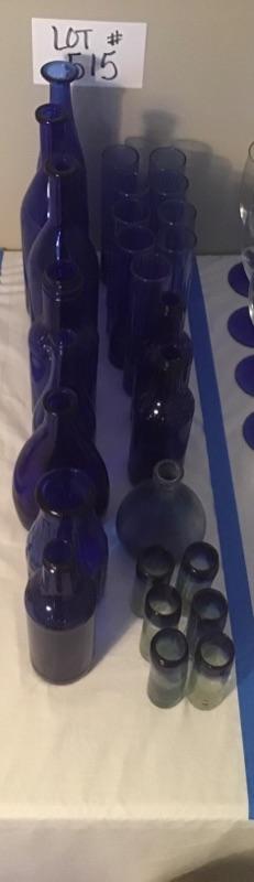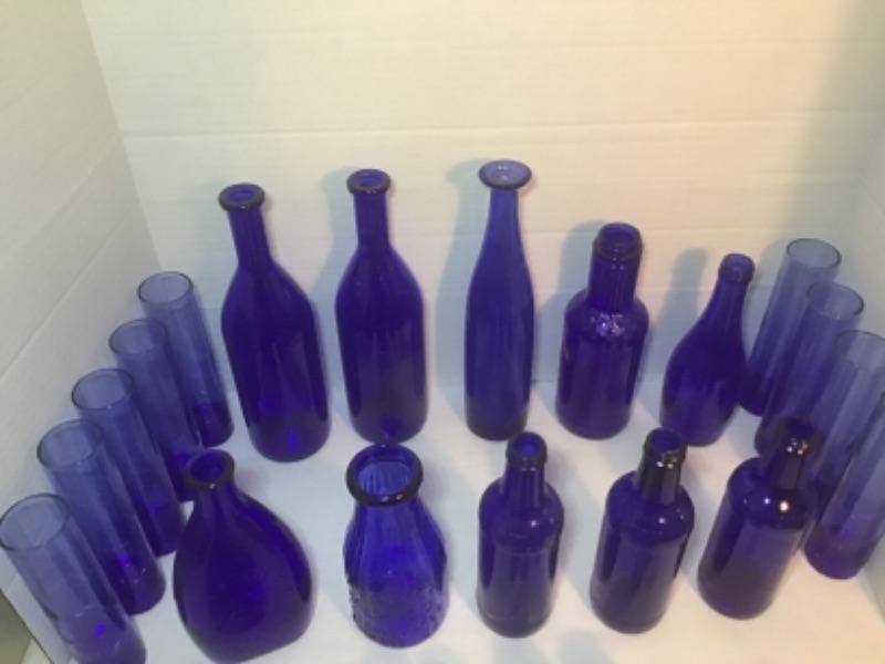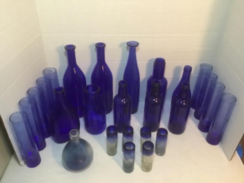 J - 515 26 pc Vintage Cobalt Blue Bottles & Bud Vases