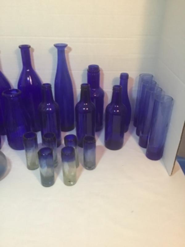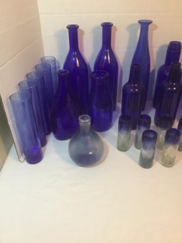 J - 515 26 pc Vintage Cobalt  Blue Bottles & Bud Vases