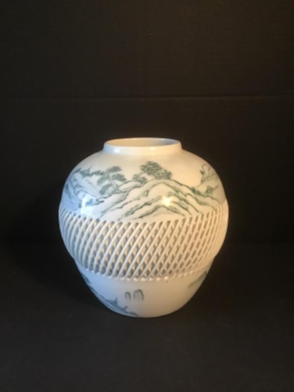 Beautiful Japanese Imari Reticulated Vase - measures 7.5” Tall x 8” at widest point