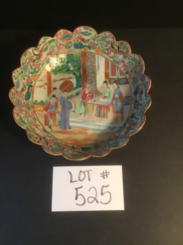 J - 525 Rose Medallion Scalloped Edge Bowl