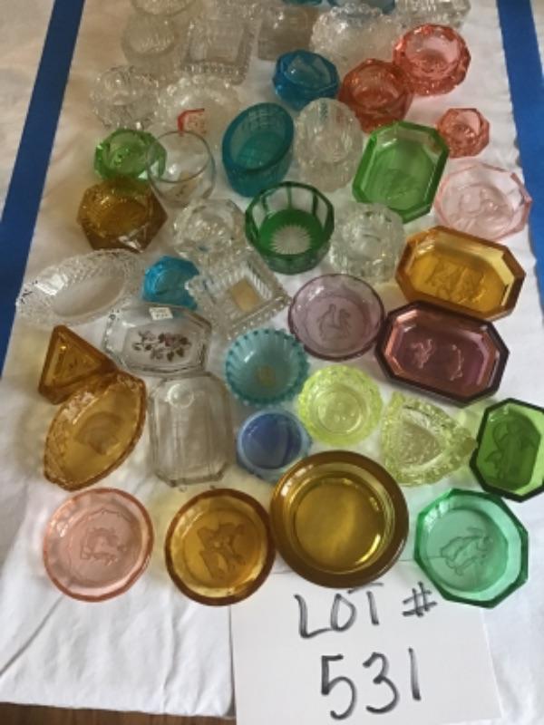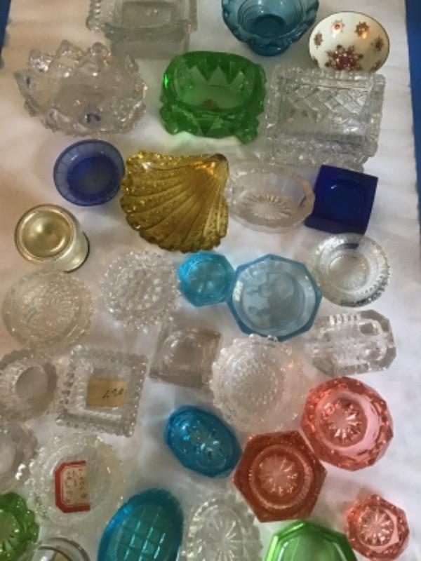 Lot of Antique Salt Dishes, in a variety of sizes, shapes and colors. Some St. Val Laurent