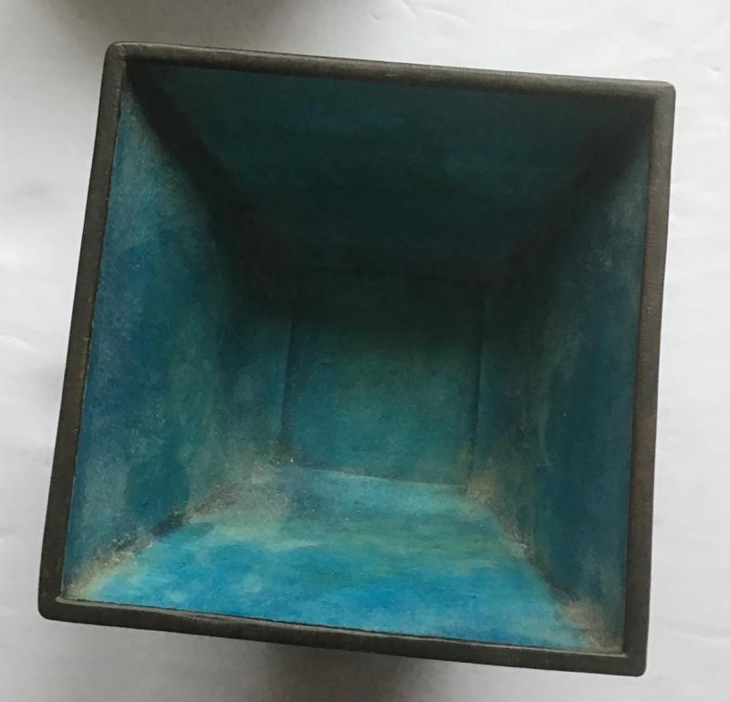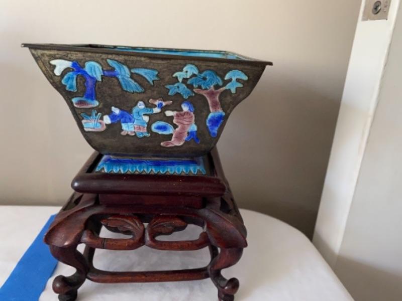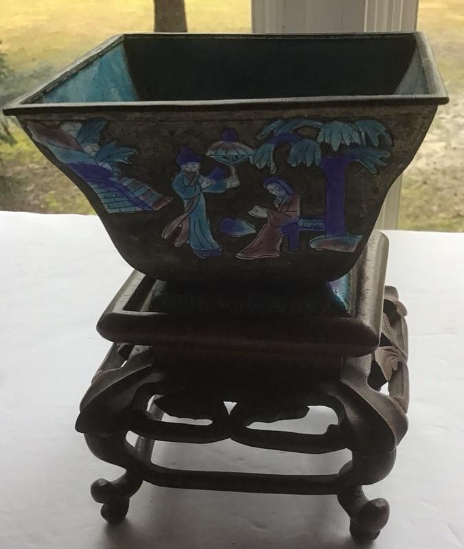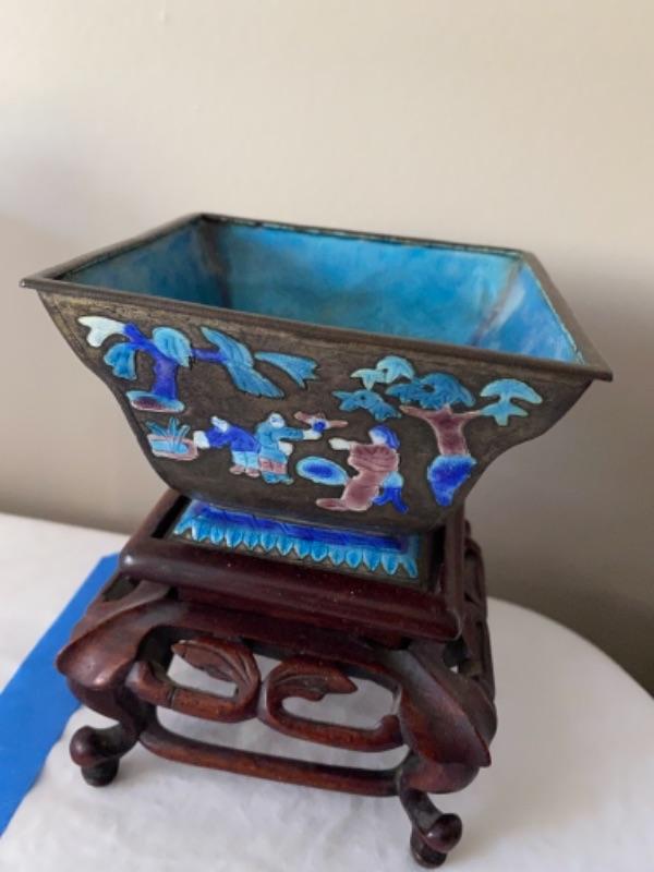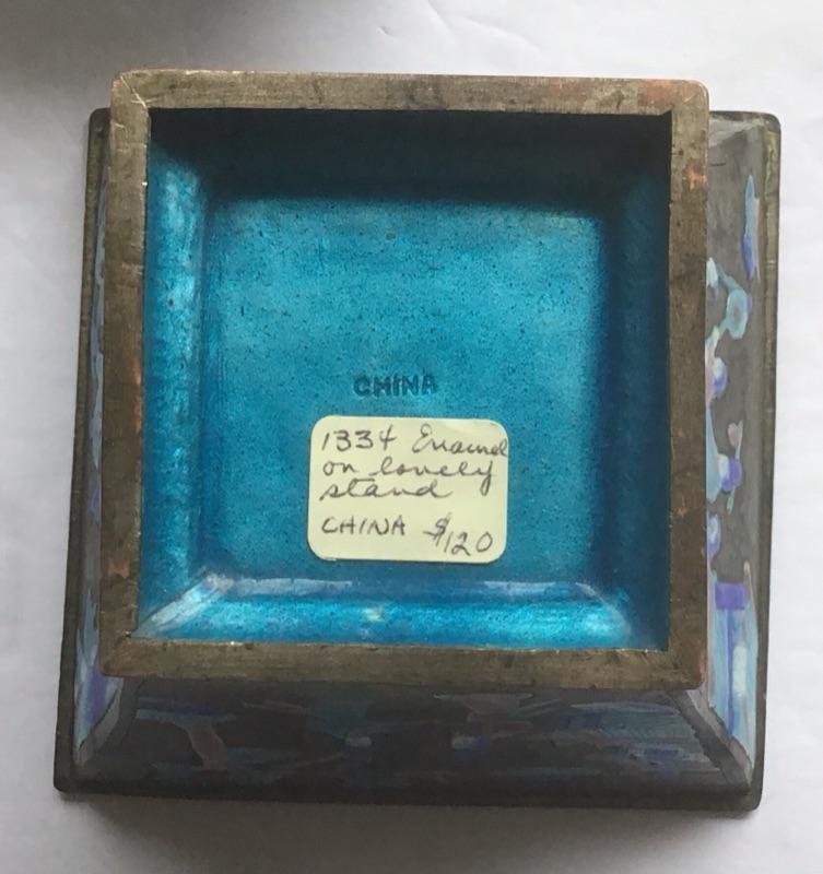Japanese Enamel Cloisonné on Stand - 5.5” Tall with base ( 2.5” without base ) x 4” sq