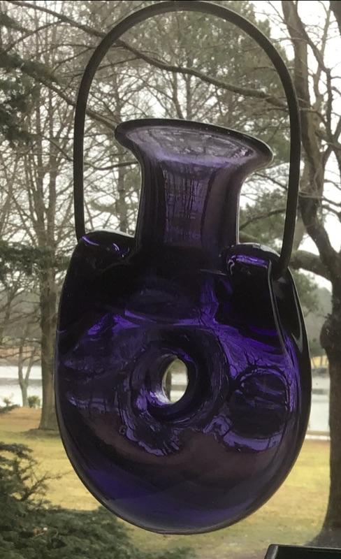 Hand Blown Glass Hanging Vase - 8.75” with handle up/ 7.75” without handle