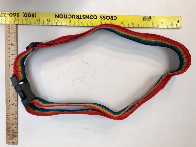 Vintage style rainbow stripe adjustable belt. Has a few dark marks from use.