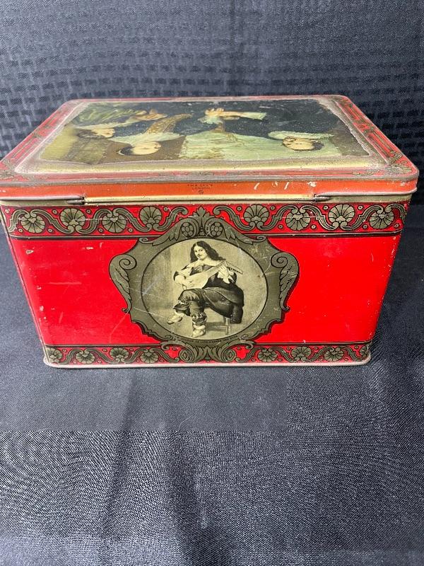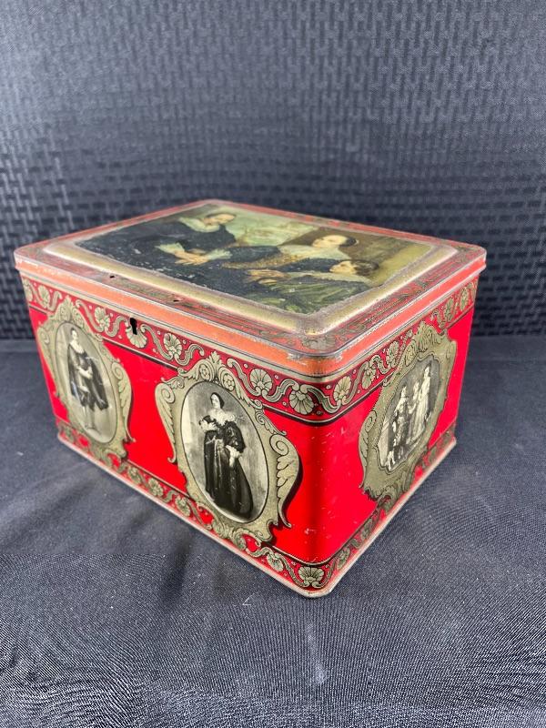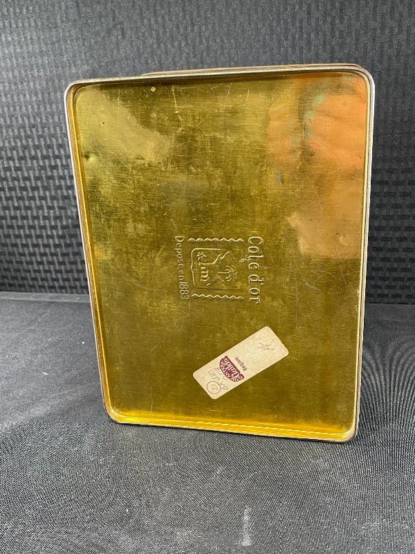 Vintage metal tin. Embossed "Cote d'or Depose en 1883" on bottom. Has a keyhole but no key. 9"x7". #020-00348