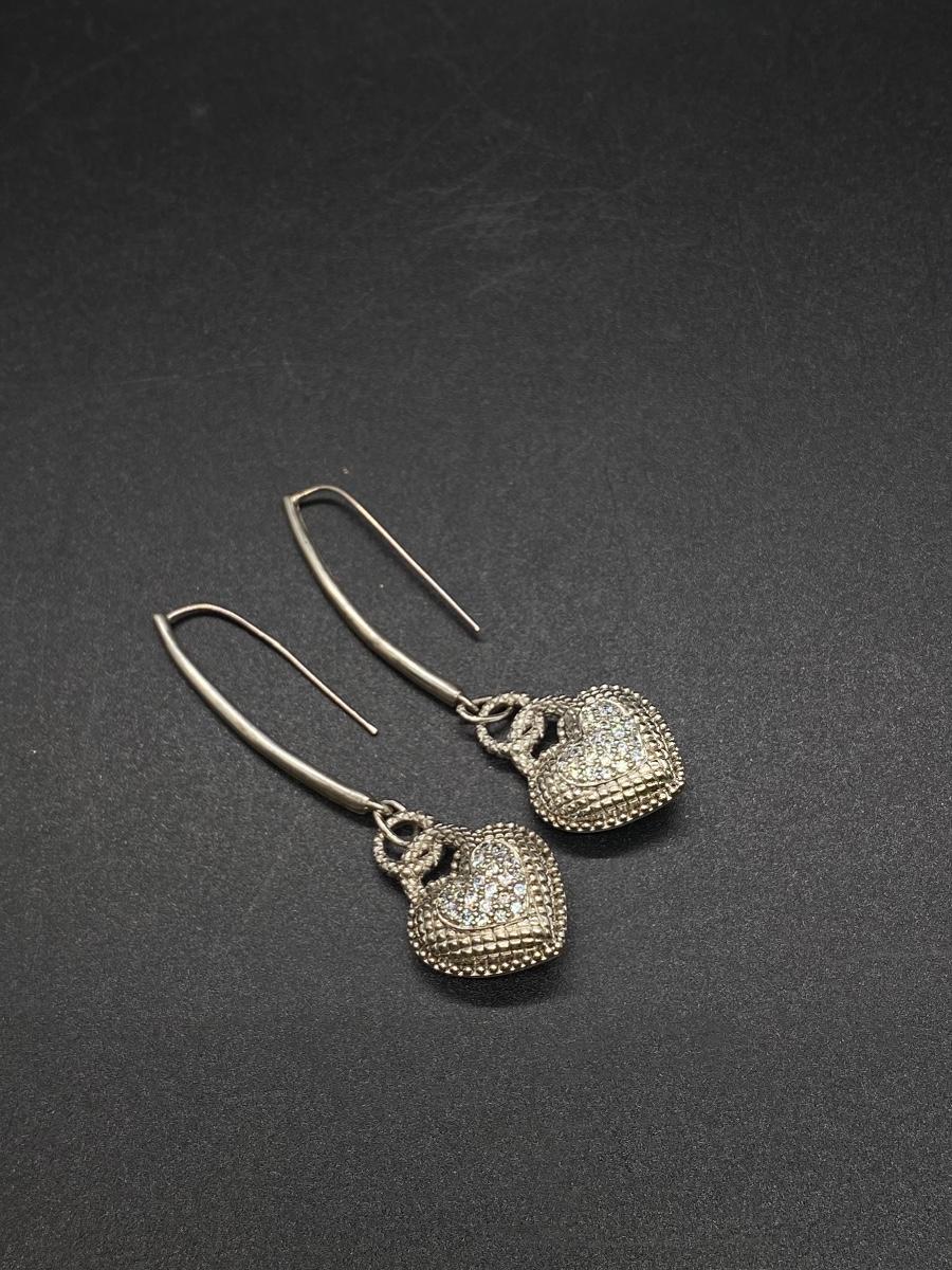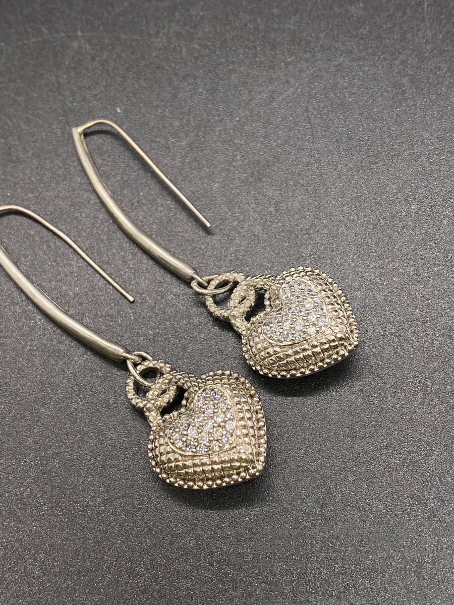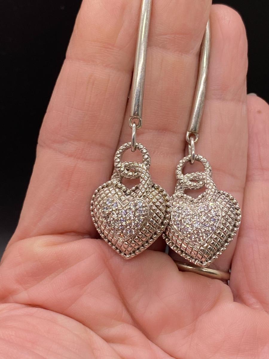 Judith Ripka sterling silver & cubic zirconia dangling heart earrings. Almost 3" total length. Stamped on the back.