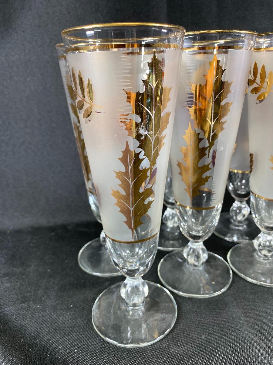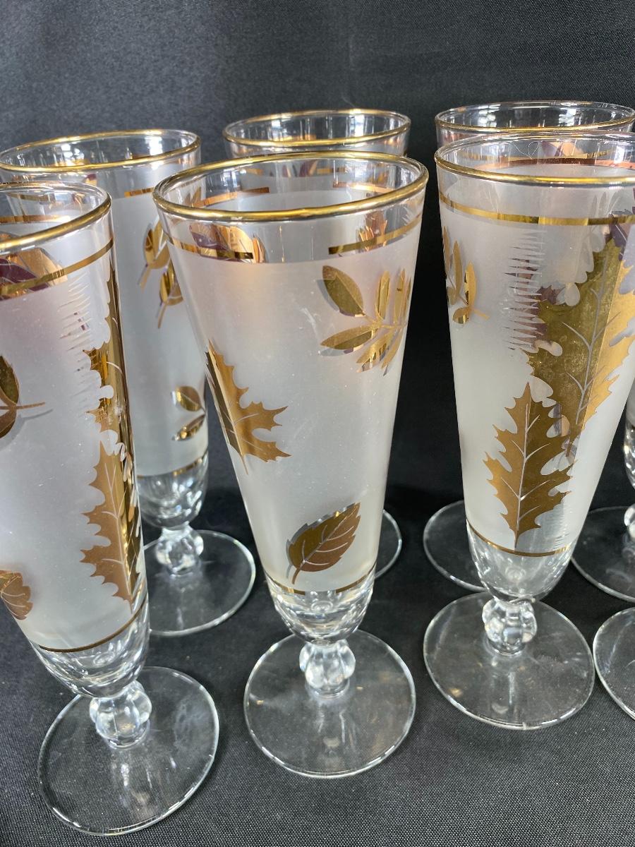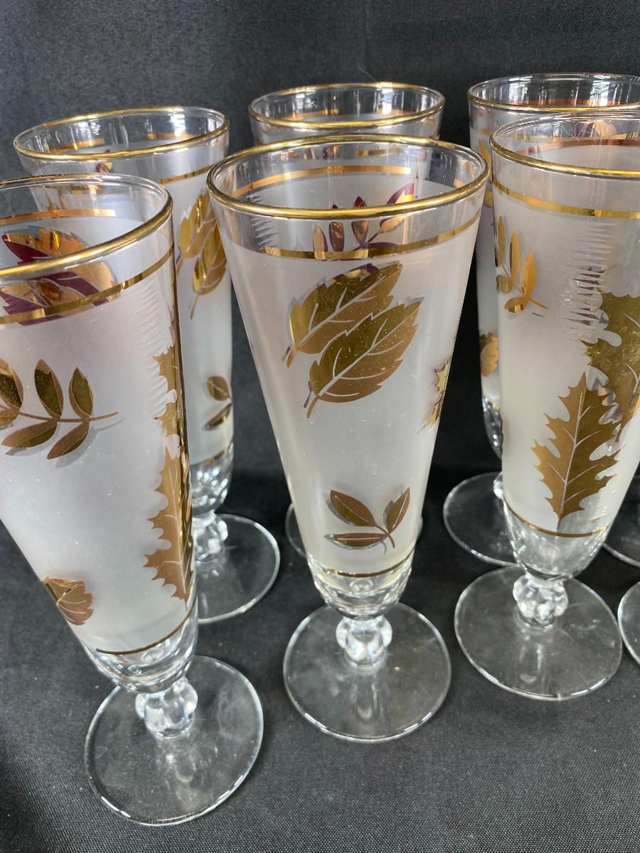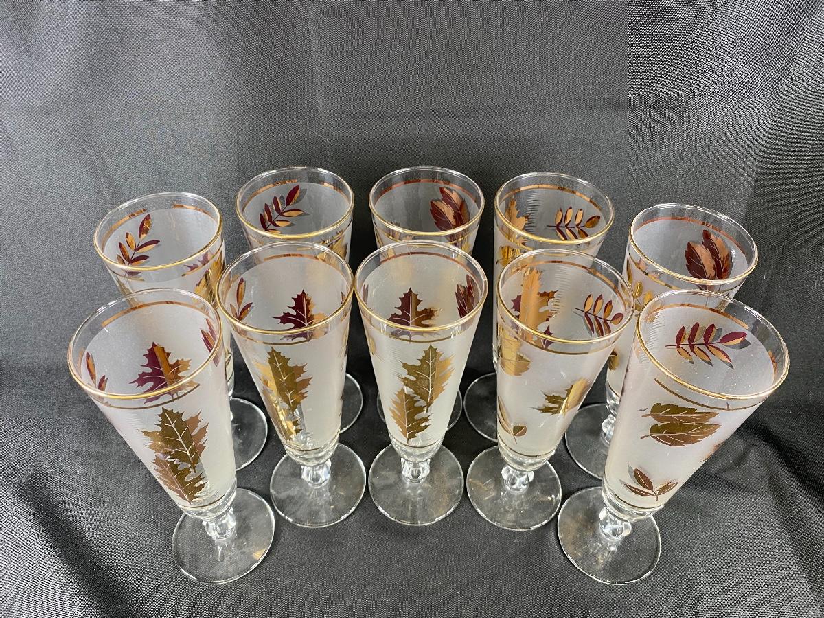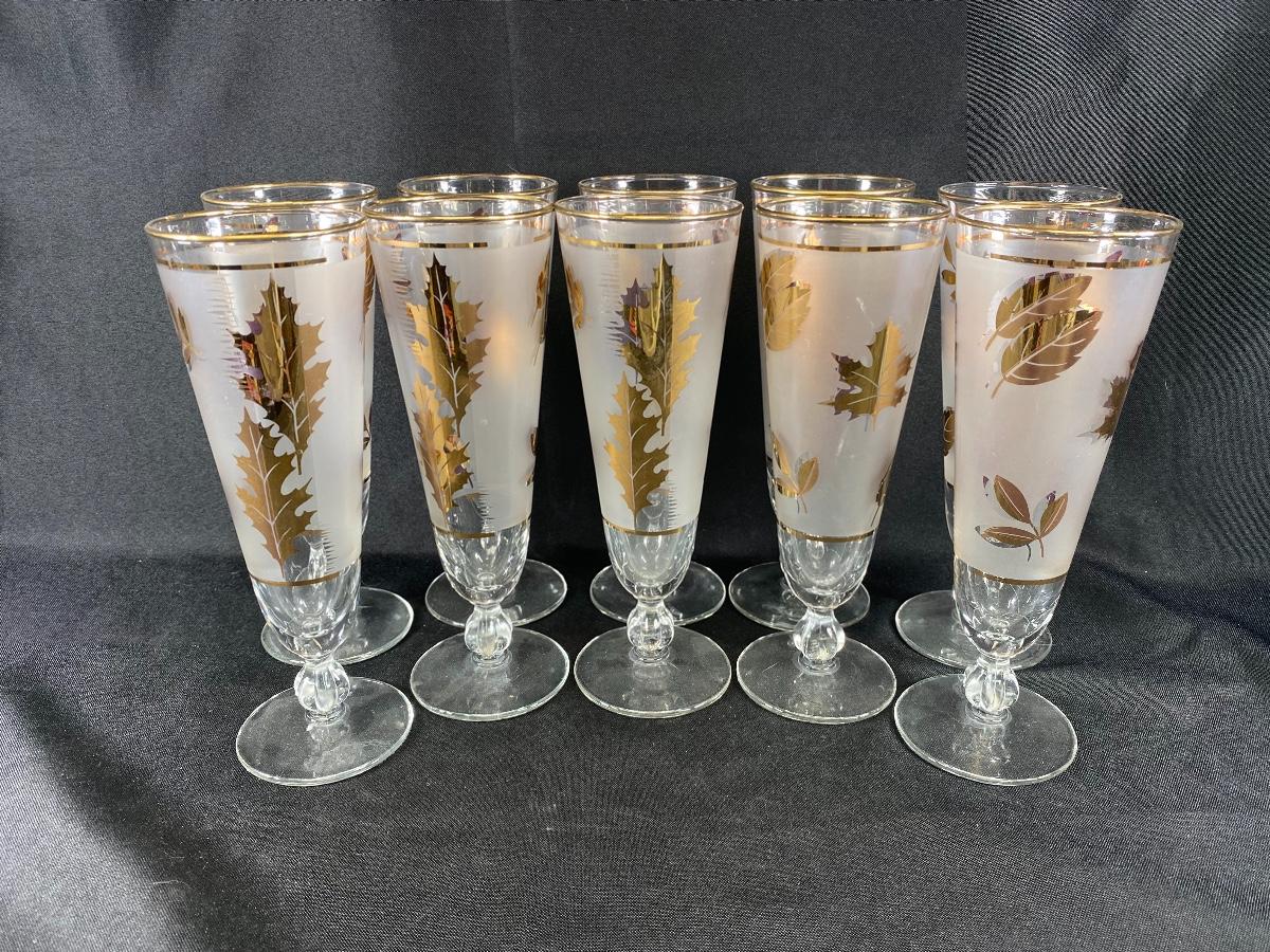 10-piece Set Libbey Glass “Gold Foliage“ Pattern Pilsner Glasses MCM