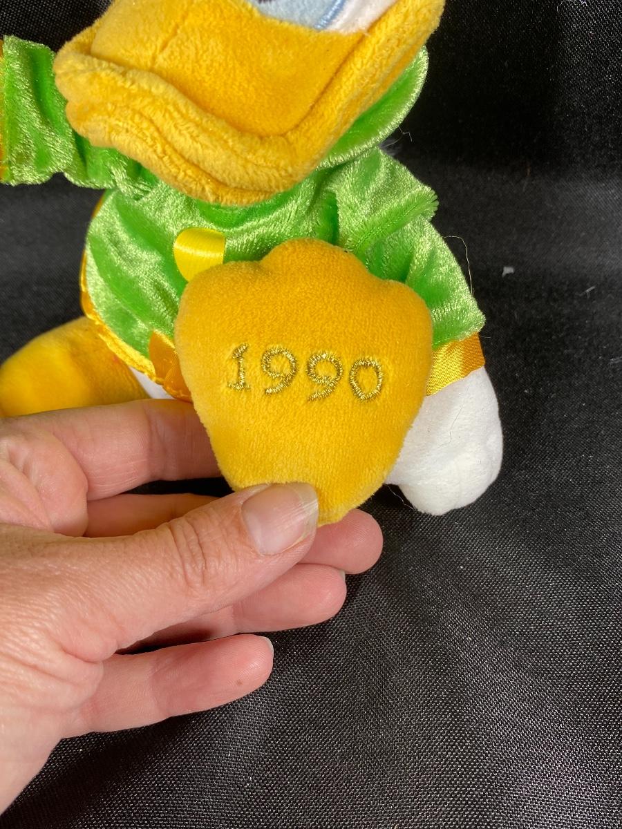 Disney's Donald Duck beanie plush. 1990 stitched on foot, wearing bright green. Unsure what he was released for. Good condition.