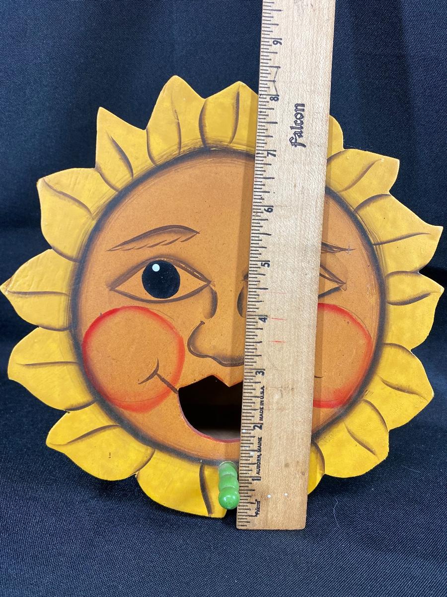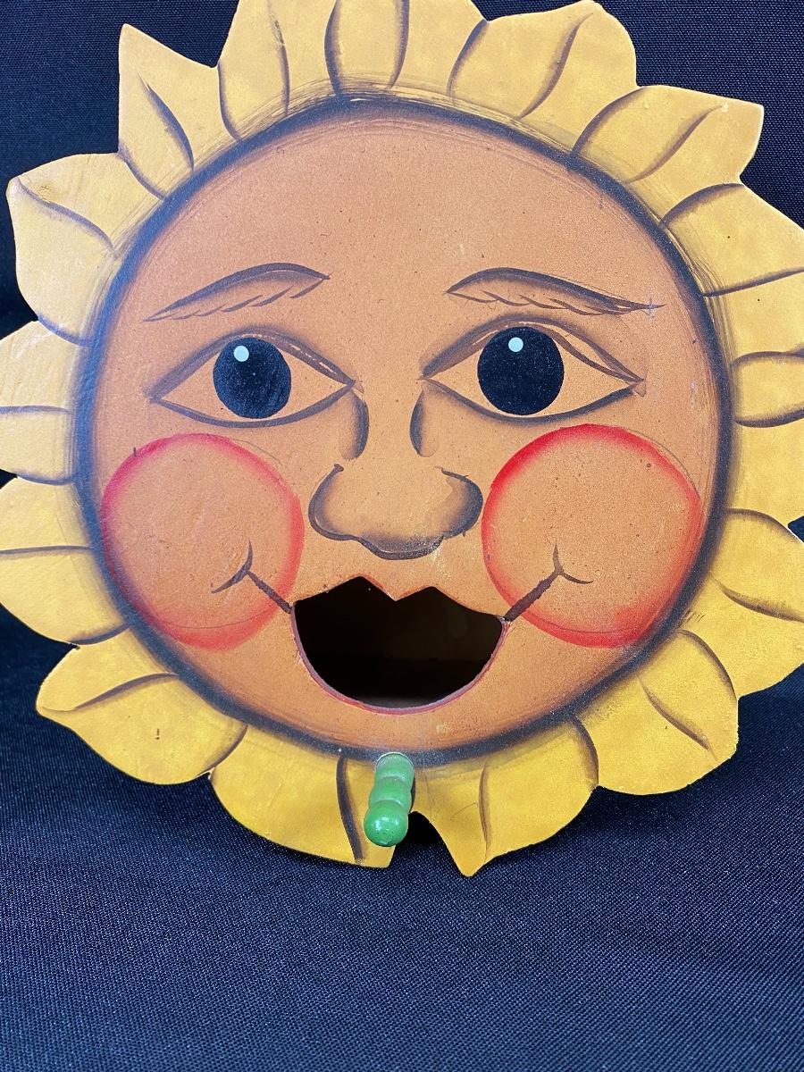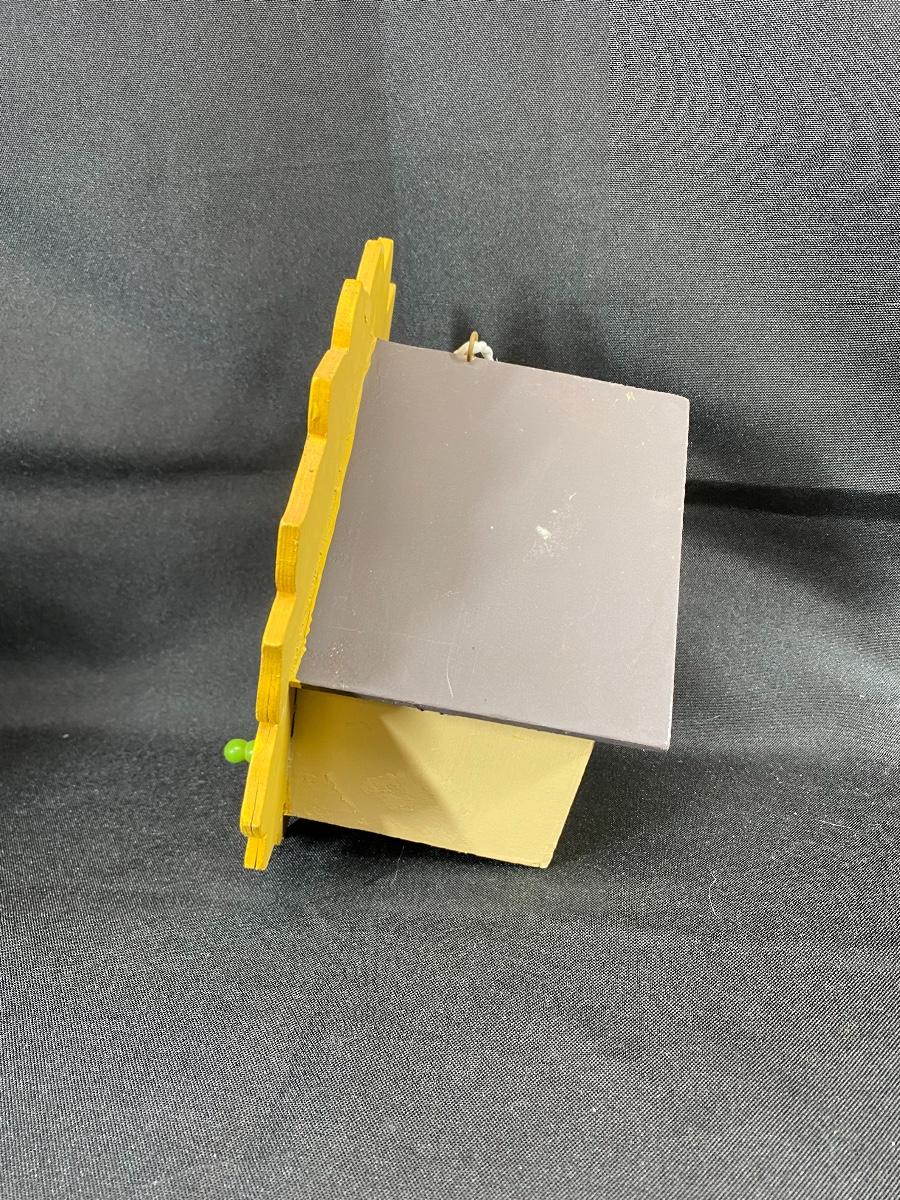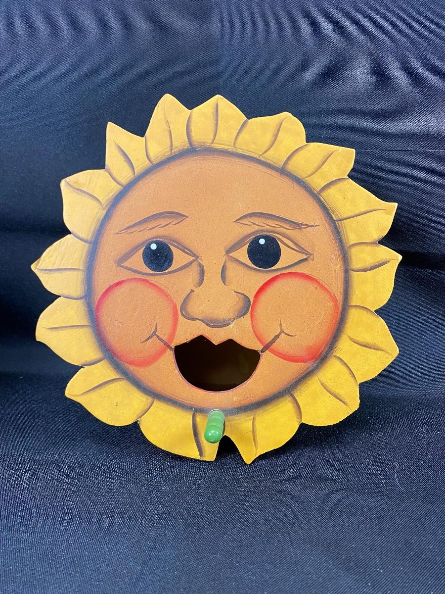 Super cute happy face sunflower birdhouse. Good condition. Can be hung. About 8" size.