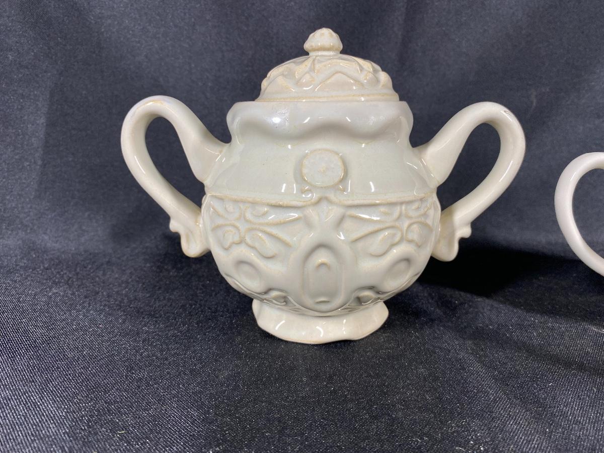 Off White Sugar Bowl and Creamer Lot