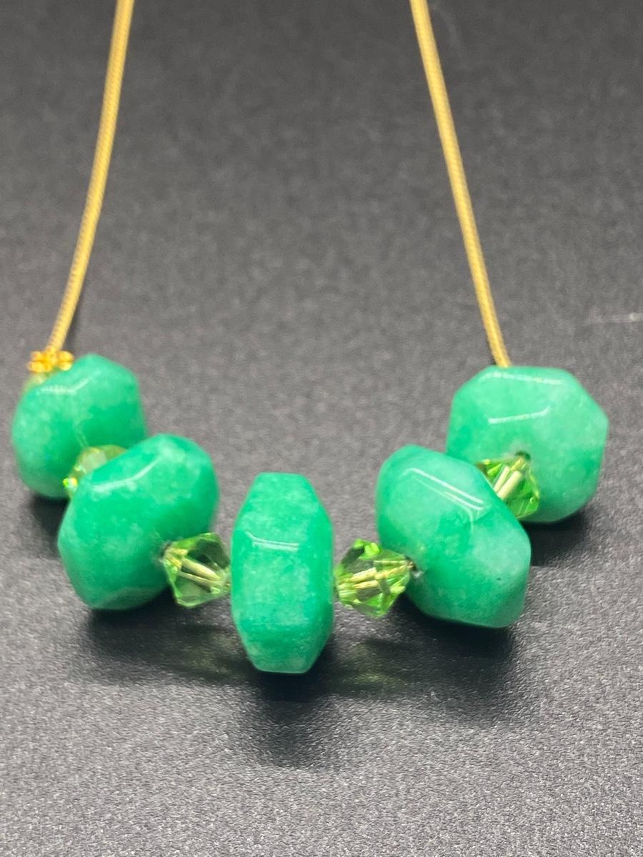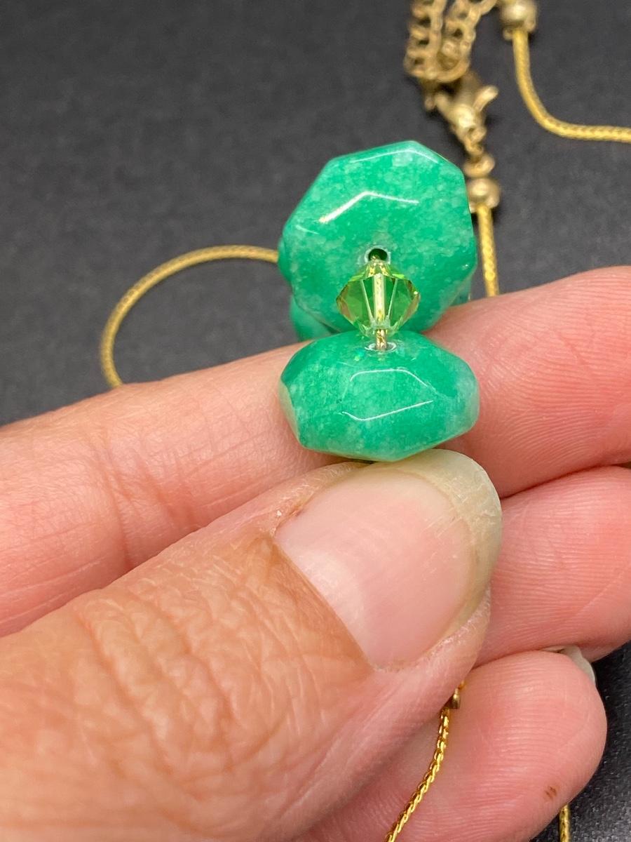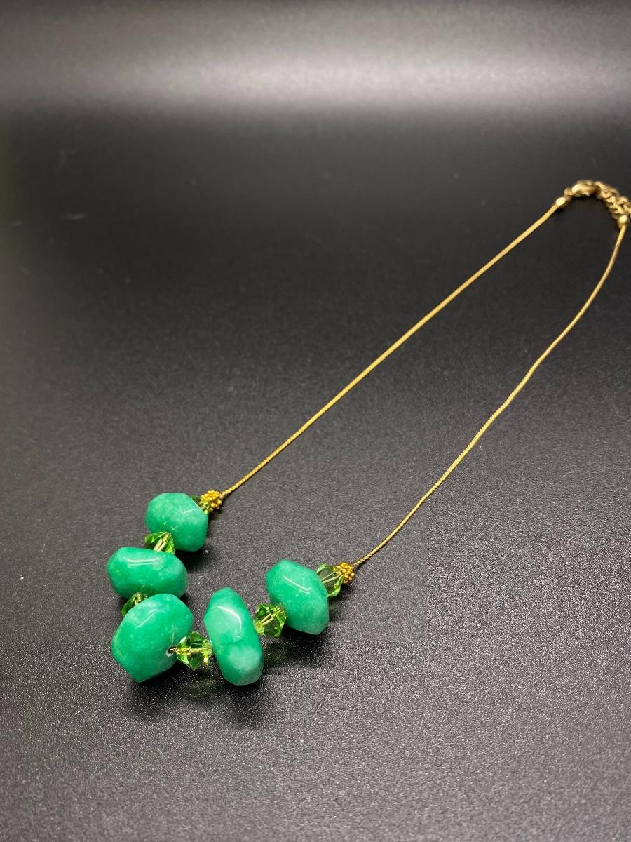 Green Polished Cut Stone Beaded Gold Chain Necklace