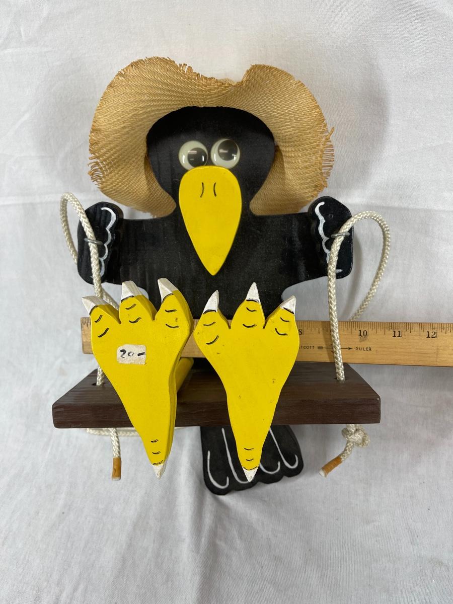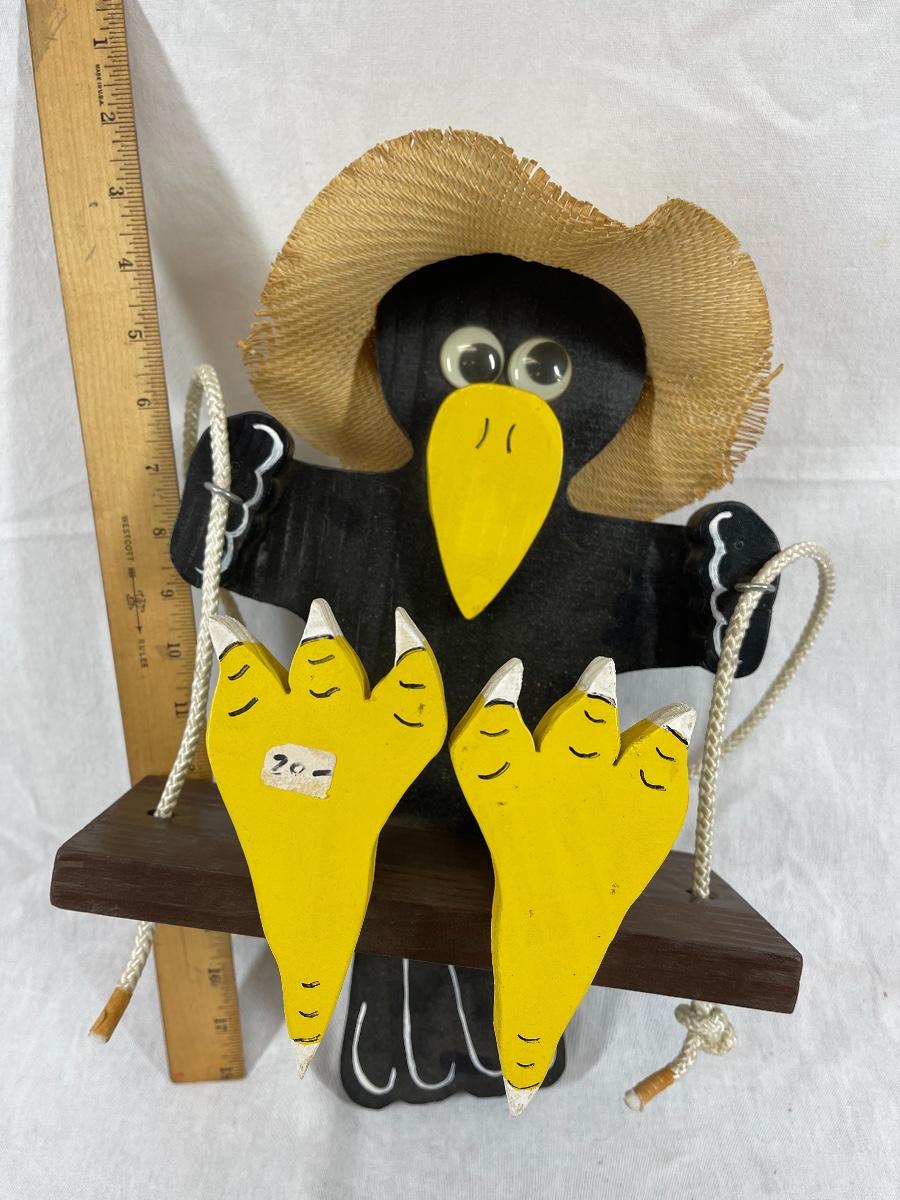 Hand Made Swinging Crow Blackbird Yard Garden Art